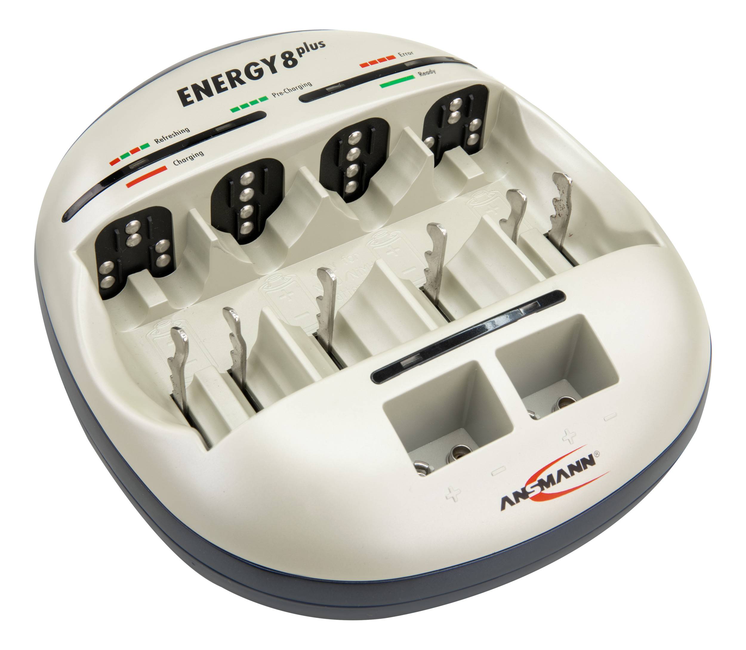Das energy 8 plus-Ladegerät überzeugt mit hohem Ladestrom, umfangreichen Sicherheitsmechanismen, kompakter Bauweise und einer übersichtlicheren LED-Anzeige. Sobald die Akkus eingelegt werden, beginnt das Gerät mit einer automatischen Diagnose und einem Kapazitätsschnelltest des jeweiligen Akkus. Durch die moderne Akkulade- und Akkupflegetechnik, sowie durch den Refresh-Modus werden die Akkus vor dem Memory-Effekt geschützt und somit die Betriebs- und Lebenszeit erheblich verlängert.