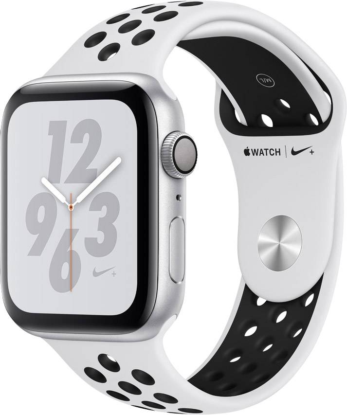 Apple Watch Nike+ Series 4 44mm Aluminiumgehäuse Silber Sportarmband Platin, Schwarz