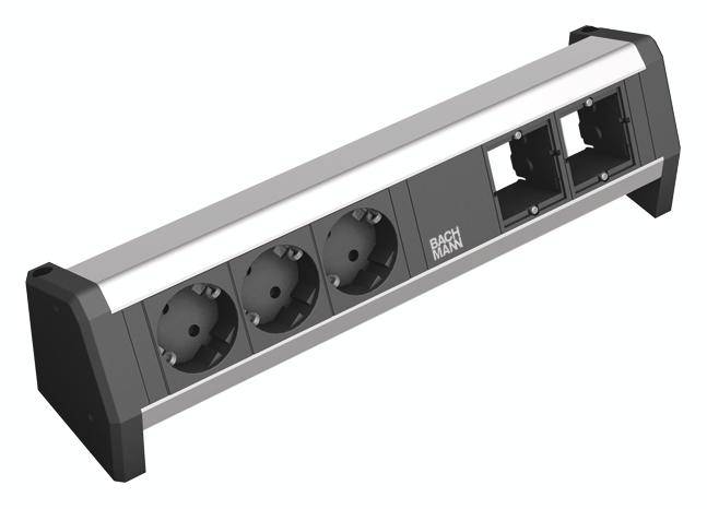 Bachmann 902.001 Steckdosenleiste ohne Schalter Schwarz, Aluminium Schutzkontakt