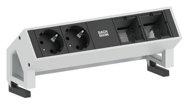 Bachmann 2x Schuko 2x Custom Modules RAL9010. Anzahl AC Anschlüsse: 2 AC-Ausgänge, AC-Steckertypen: Typ F, Produktfarbe: Schwarz, Weiß