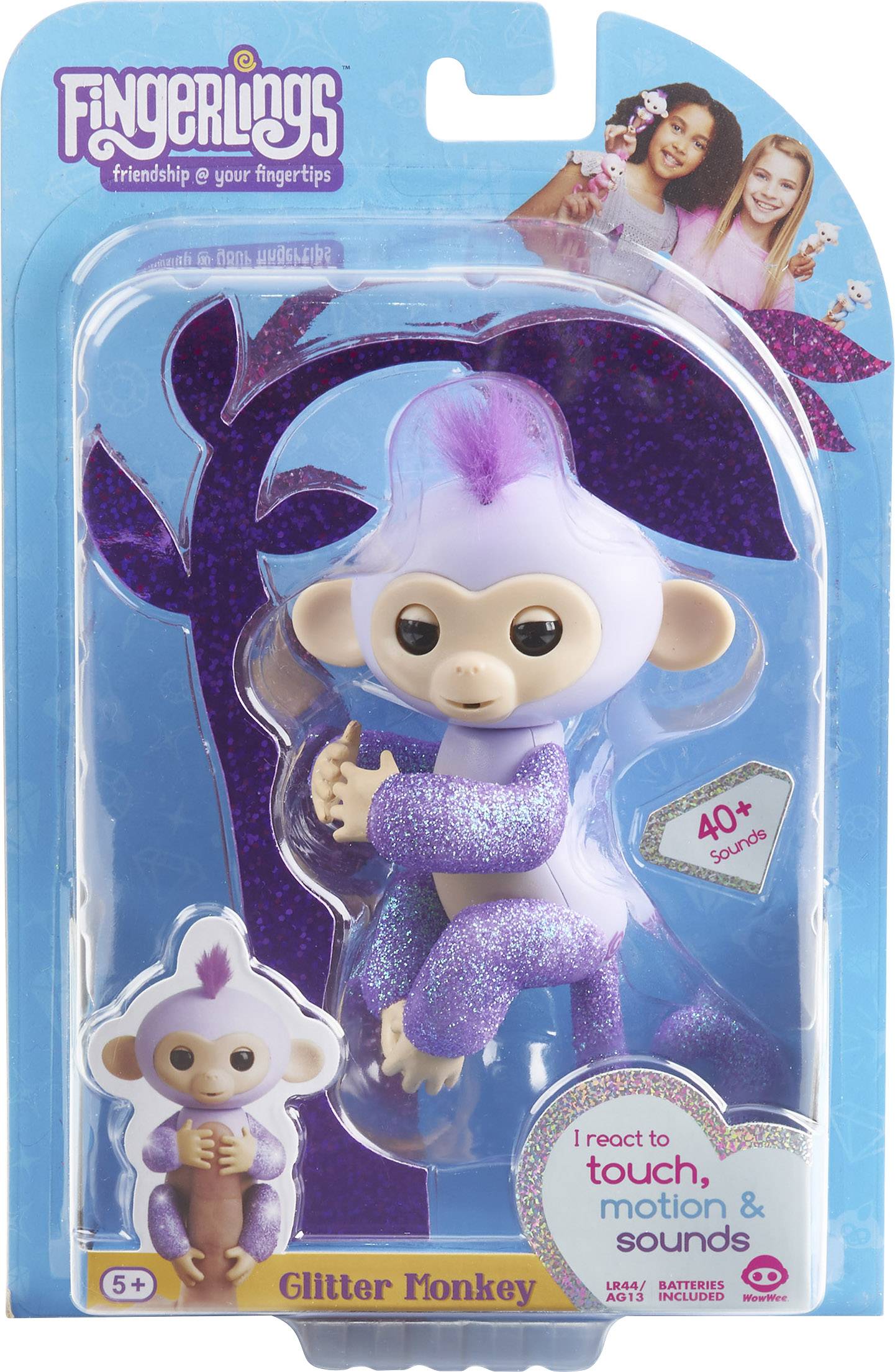 WOWWEE Fingerlings Glitzer Äffchen Kiki lila + 4x LR 44 Knopfzellen.