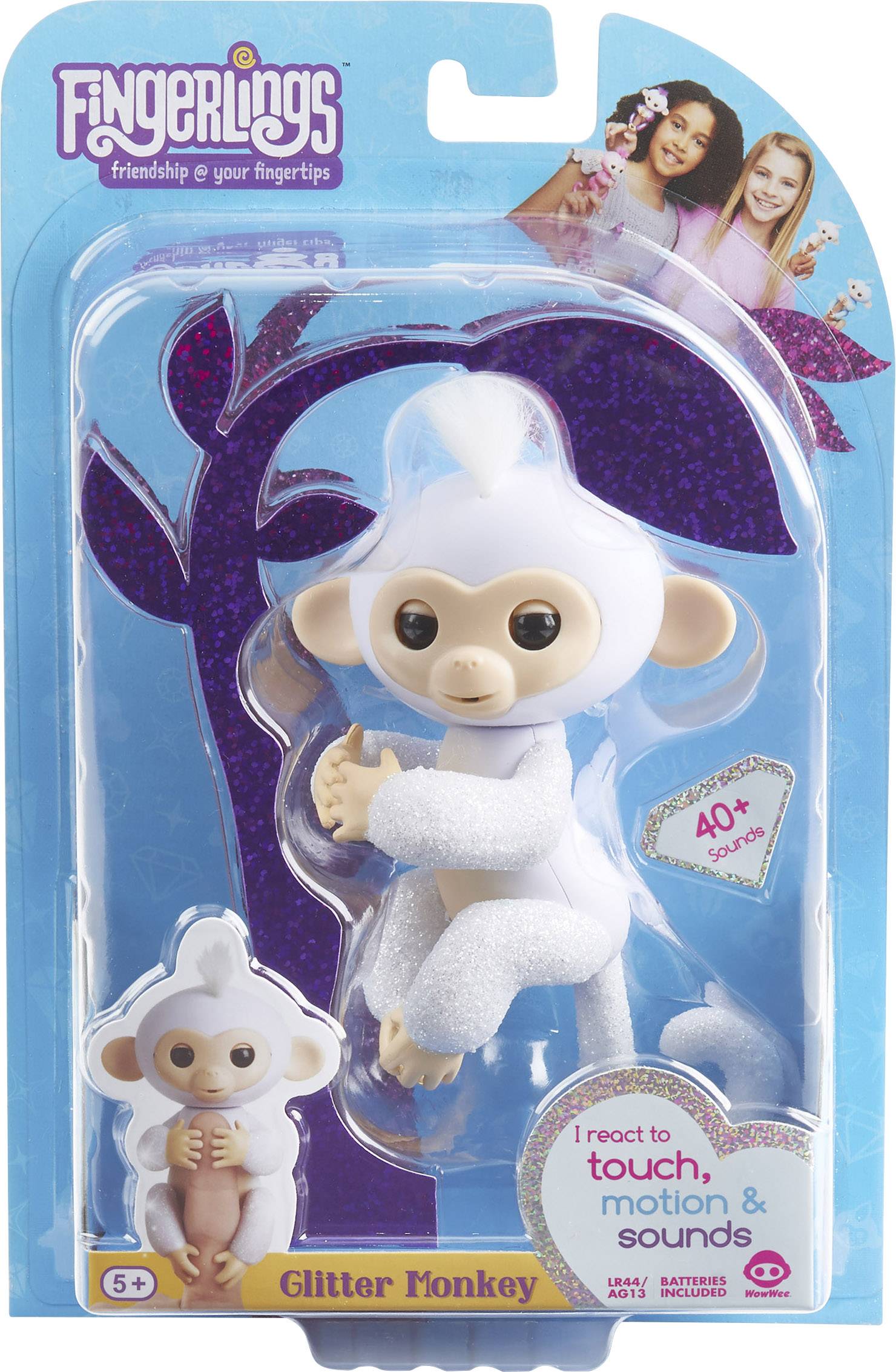 WOWWEE Fingerlings Glitzer Äffchen Sugar weiß + 4x LR 44 Knopfzellen.