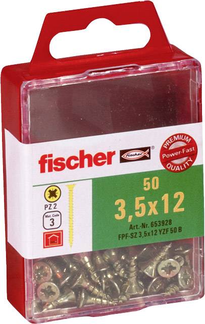 Fischer 653928 Senkkopfschrauben 3.5mm 12mm Kreuzschlitz Pozidriv galvanisch verzinkt 50St.