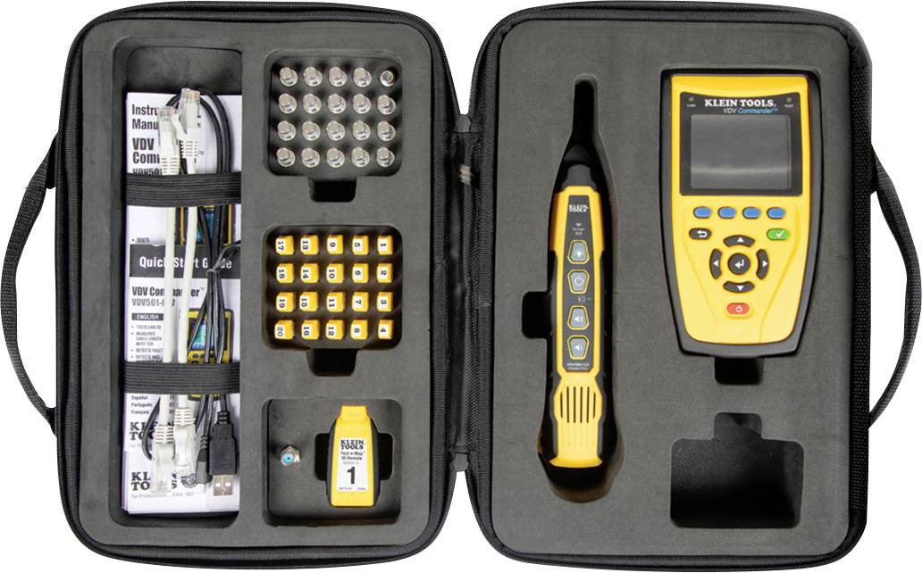 Der Netzwerktester VDV Commander ist ein vollständiger Sprach-/Daten-/Videokabeltester im Test&Tone Kit zusätzlich mit PROBEplus und Remote ID's.