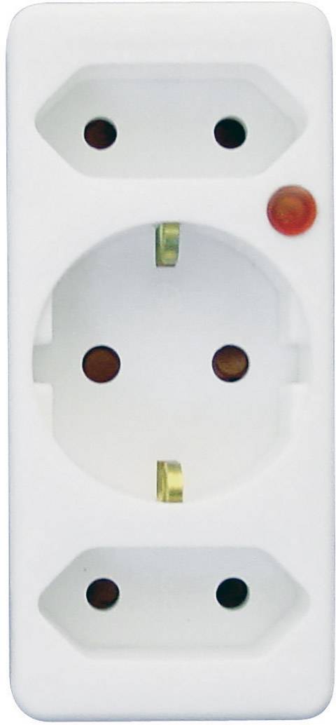 Dieses Gerät wird unmittelbar auf die Netzsteckdose aufgesteckt und daran die Geräte-Stecker angesteckt. 3fach Belegung für 1 x Schutzkontakt-Stecker und 2 x Euro-Stecker.