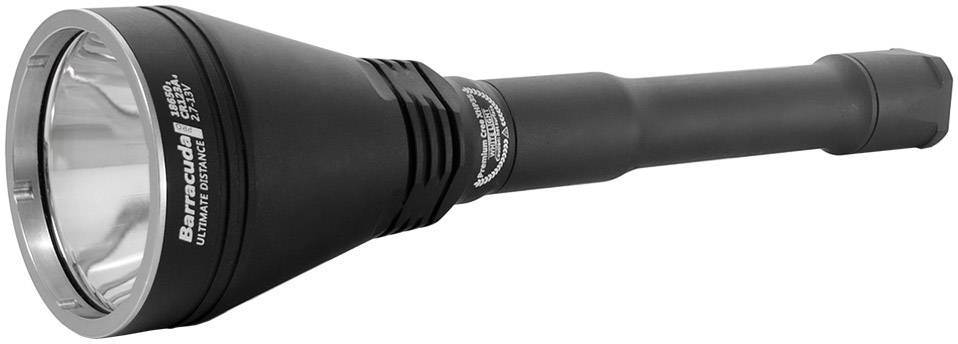 Die Barracuda ist eine Hochleistungs-Taschenlampe mit großen Reflektor-Schirm für große Ausleuchtung und die härtesten Einsätze. Der Aluminium-Reflektor erzeugt mit seiner computerberechneten und glatten Bauweise einen großen und gleichmäßigen Lichtkegel. Die zahlreichen Leuchtstärken ermöglichen Ihnen individuelle und Augenschonende Ausleuchtung. So ist z.B. im freien Feld die max. Leuchtstärke optimal, im Haus eine mittlere und als Nachtlicht die geringste. Innovative Linsen-Konstruktion Schlag- und kratzfest mit Saphir- und Anti-Reflex-Beschichtung. Durch ein zweites Batterierohr reduzieren Sie die Länge des Suchscheinwerfers von 263 mm auf 194 mm und können somit die Leuchte z.B. auch in der Jackentasche tragen.