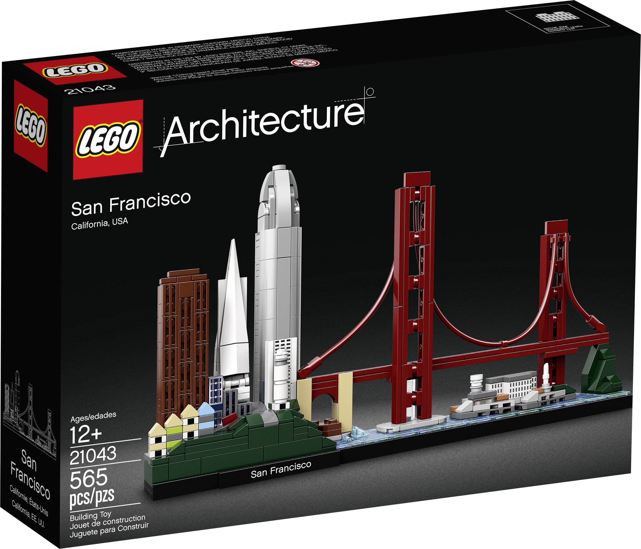 LEGO® Architecture Interpretation von San Francisco. · Das Set umfasst legendäre Sehenswürdigkeiten und berühmte Wahrzeichen San Franciscos, unter anderem die berühmten „Painted Ladies“-Häuser, 555 California Street, die Transamerica Pyramid, den Salesforce Tower, den Coit Tower, Fort Point, die Golden Gate Bridge und Alcatraz Island. · Das Set enthält zudem eine mit blauen Platten besetzte Grundplatte, die die Golden-Gate-Meerenge repräsentiert. · Das beiliegende Heft enthält Informationen über den Designer, die Architektur und die Geschichte der einzelnen Sehenswürdigkeiten sowie historische Fakten zu San Francisco und dem architektonischen Erbe dieser berühmten Stadt (nur in englischer Sprache. Das Heft kann in anderen Sprachen auf LEGO.com/architecture heruntergeladen werden.). · Ebenfalls enthalten: eine 4x34-Grundplatte mit Platten und dem dekorativen Namensschild „San Francisco“. · Mit der LEGO® Architecture Skyline Kollektion lassen sich einige der weltweit aufregendsten Städte nachbilden. · Die LEGO® Architecture Sets sind eine Hommage an die Welt der Architektur in Form von LEGO Steinen und sprechen jeden an, der sich für Reisen, Design, Architektur und Geschichte interessiert. · Dieses Set enthält mehr als 565 Teile. · Das Set ist 16 cm hoch, 28 cm breit und 7 cm tief.
