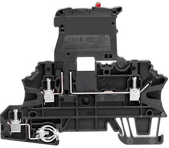 Sicherungs-Reihenklemme bestehend aus einem Reihenklemmenunterteil mit Sicherungseinsatzträger.