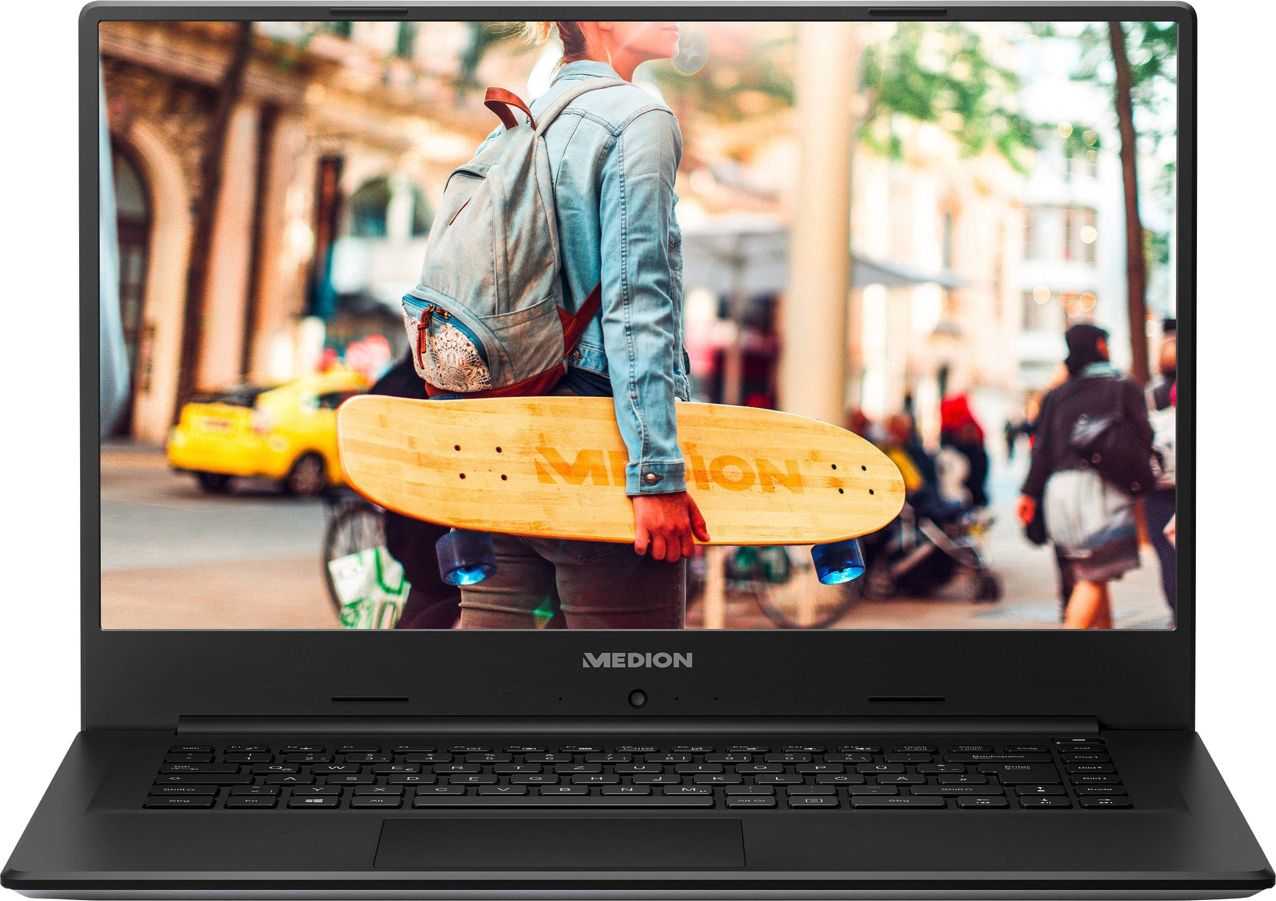Schlankes Design Besonders mobil mit schlankem Gehäuse Egal ob Sie unterwegs Ihre E-Mails lesen, surfen, Filme ansehen oder Bilder betrachten wollen: Das schlanke Notebook von MEDION ist mit nur 17,9 Millimetern besonders dünn und leicht zu transportieren. Es passt bequem in Ihre Tasche oder den Rucksack – ideal für Schule, Beruf und Freizeit.