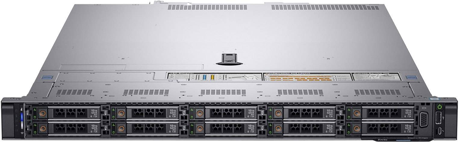 Profitieren Sie von einem außerordentlich guten Dichte-Leistungs-Verhältnis für eine skalierbare Datenverarbeitung. Der PowerEdge R440 bietet ein Alleinstellungsmerkmal in einem kompakten Design mit Small Form Factor (SFF). Profitieren Sie von der Flexibilität und maximieren Sie die Leistung mit zwei skalierbaren Intel® Xeon® Prozessoren, bis zu 16 DIMMs und skalierbarem Massenspeicher, mit dem Sie eine beliebige Kombination aus SSDs und NVMe-PCIe-SSDs verwenden können. Der R440 bietet mithilfe der integrierten Diagnosefunktionen und SupportAssist maximale Verfügbarkeit in einer zuverlässigen Umgebung.