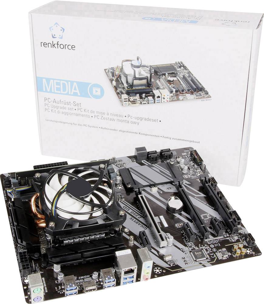 Mit diesem Aufrüst-Set von Renkforce holen Sie sich das Komplettpaket in Ihren Rechner. Das Tuning-Kit ist eine der effektivsten Methoden, um die gezielte Leistungssteigerung eines Desktop-Computers zu erzielen. Das perfekt aufeinander abgestimmte Komplettset besteht aus Mainboard, Prozessor, Arbeitsspeicher und CPU-Kühler und ist bereits fertig zusammengebaut. Durch das tauschen von maßgeblichen Komponenten, die für die Leistung des PCs ausschlaggebend sind, wird der PC auf den neuesten Stand der Technik gebracht.