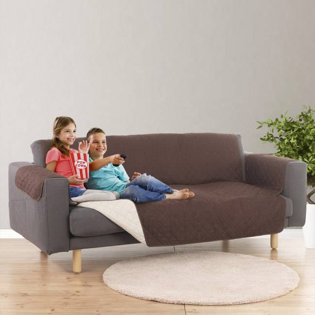 Nicht nur Haustierhalter und Eltern von kleinen Kindern kennen das Problem: Kaum ist das neue Sofa da, sind darauf auch schon die ersten Flecken, Kratzer und Abnutzungsspuren zu finden. Mit dem ""EASYmaxx"" Couch Protector sorgen Sie unkompliziert und stylisch zugleich für Abhilfe. Der gesteppte Sofa-Überwurf lässt sich mit wenigen Handgriffen auf Ihre Couch legen. Mit seiner schmutz- und flüssigkeitsabweisenden Oberfläche schützt er vor lästigen Verunreinigungen und Beschädigungen. Weniger Verrutschen dank Seitenlaschen und Rückenteil. Endlich Schluss mit Flecken nach der Party, Krallenkratzern von Hund & Katze und Filzstift-Kunstwerken der lieben Kleinen auf Ihrem geliebten Möbelstück! Der "EASYmaxx"