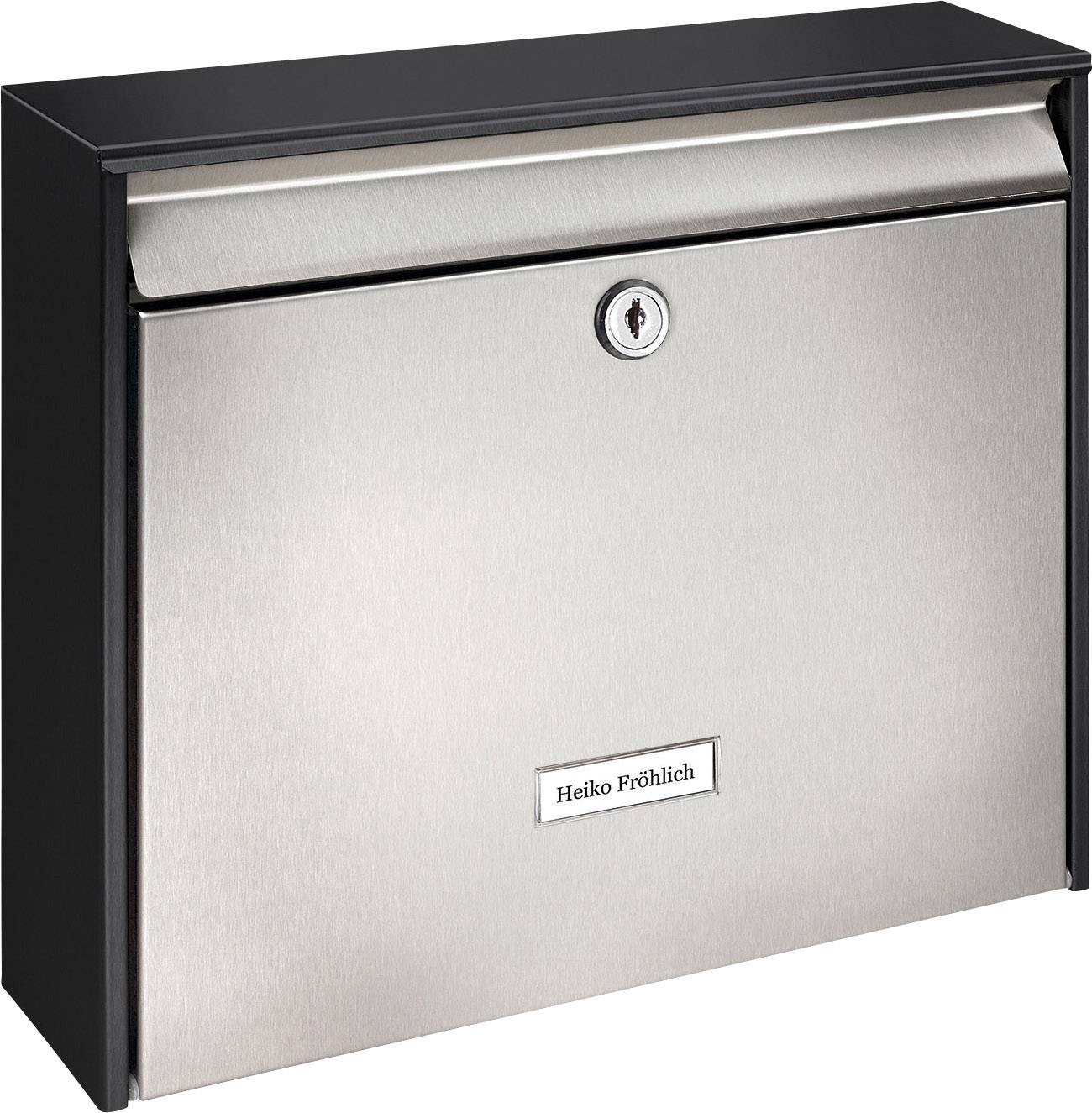 Bei dem BURG-WÄCHTER Briefkasten Black & Steel Oxford 6877 B+S sind Tür sowie Einwurfklappe aus Edelstahl und das Gehäuse aus Stahl. Dabei sind Tür und Einwurfklappe mit transparentem Schutzlack überzogen und das Gehäuse mattschwarz beschichtet. Das Einwurf-Format ist DIN C4. Der Briefkasten entspricht der EN 13724. Zwei Schlüssel sind im Lieferumfang enthalten.