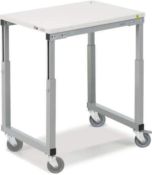 Beistellwagen, Höhe 650-900 mm, Stahl/Holzkonstruktion, 1 Ebene(n), 4 Lenkrollen, 2 Lenkrollen mit Feststellern, Korpus mit Pulverbeschichtung in RAL7045 Telegrau , Ebenen mit Melaminharzbeschichtung in grau.