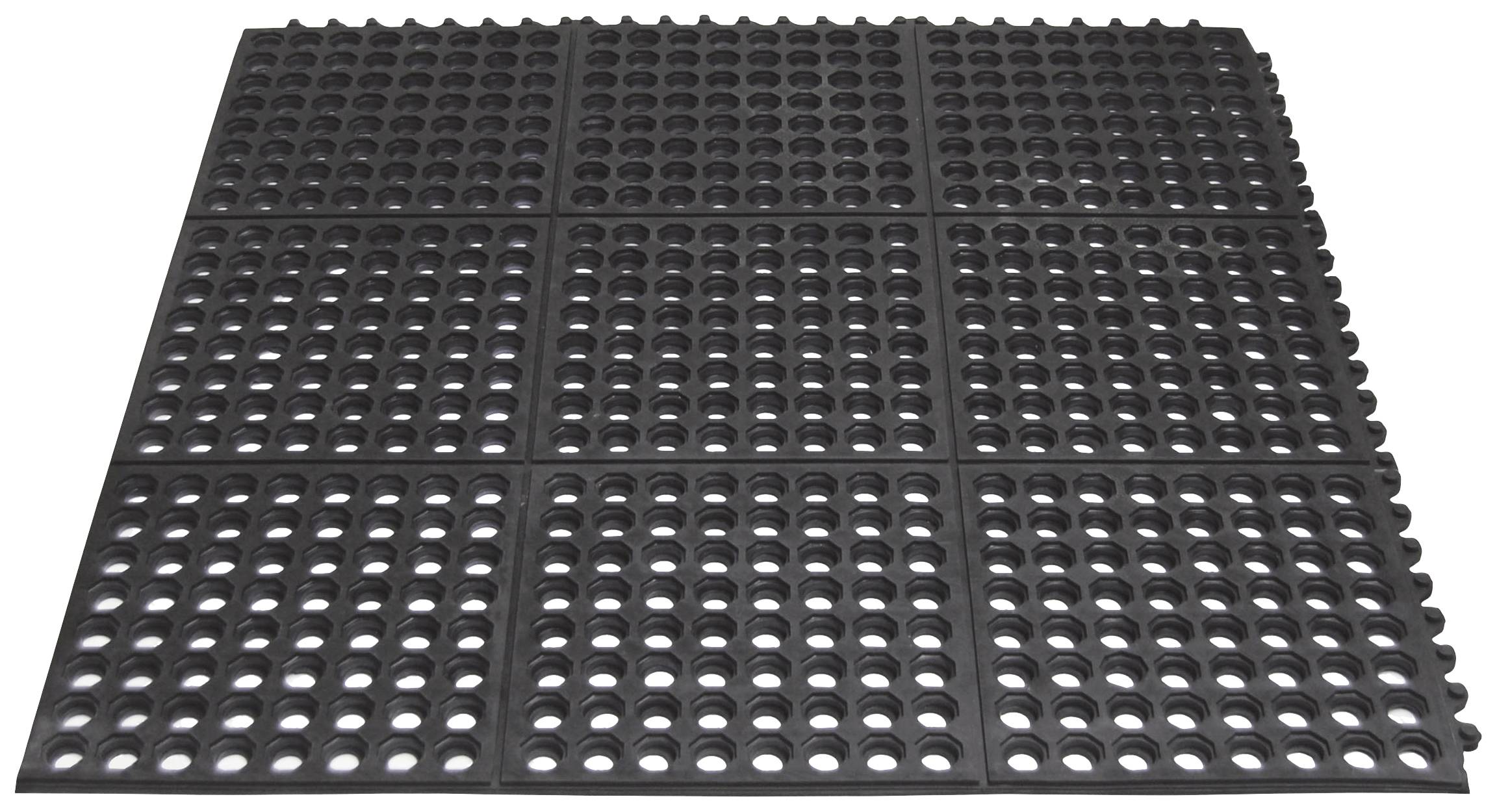 Arbeitsplatz-Bodenbelag, Modul-System, Anbaumodul, Höhe x Länge x Breite 15 x 900 x 900 mm, für Betrieb, aus Kautschuk mit durchbrochener Oberfläche in schwarz, isolierend, rutschhemmend und lärmdämmend, fördert Entlastung von Rücken und Beinen.