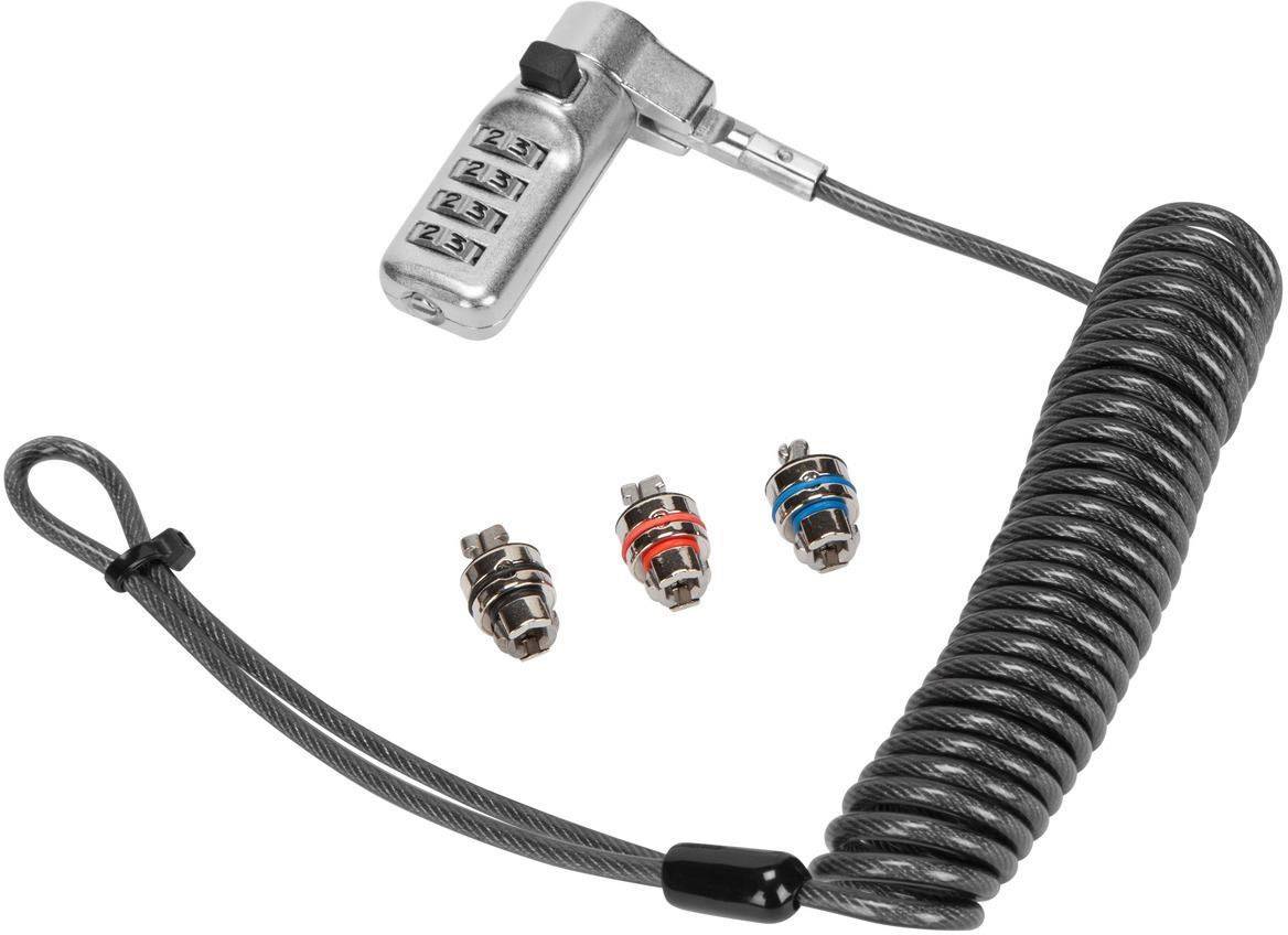 Targus, ASP86CCLGL, Defcon 3-in-1 Coiled Combination, Diebstahlschutz, Diebstahlsicherung, Notebookschloss
