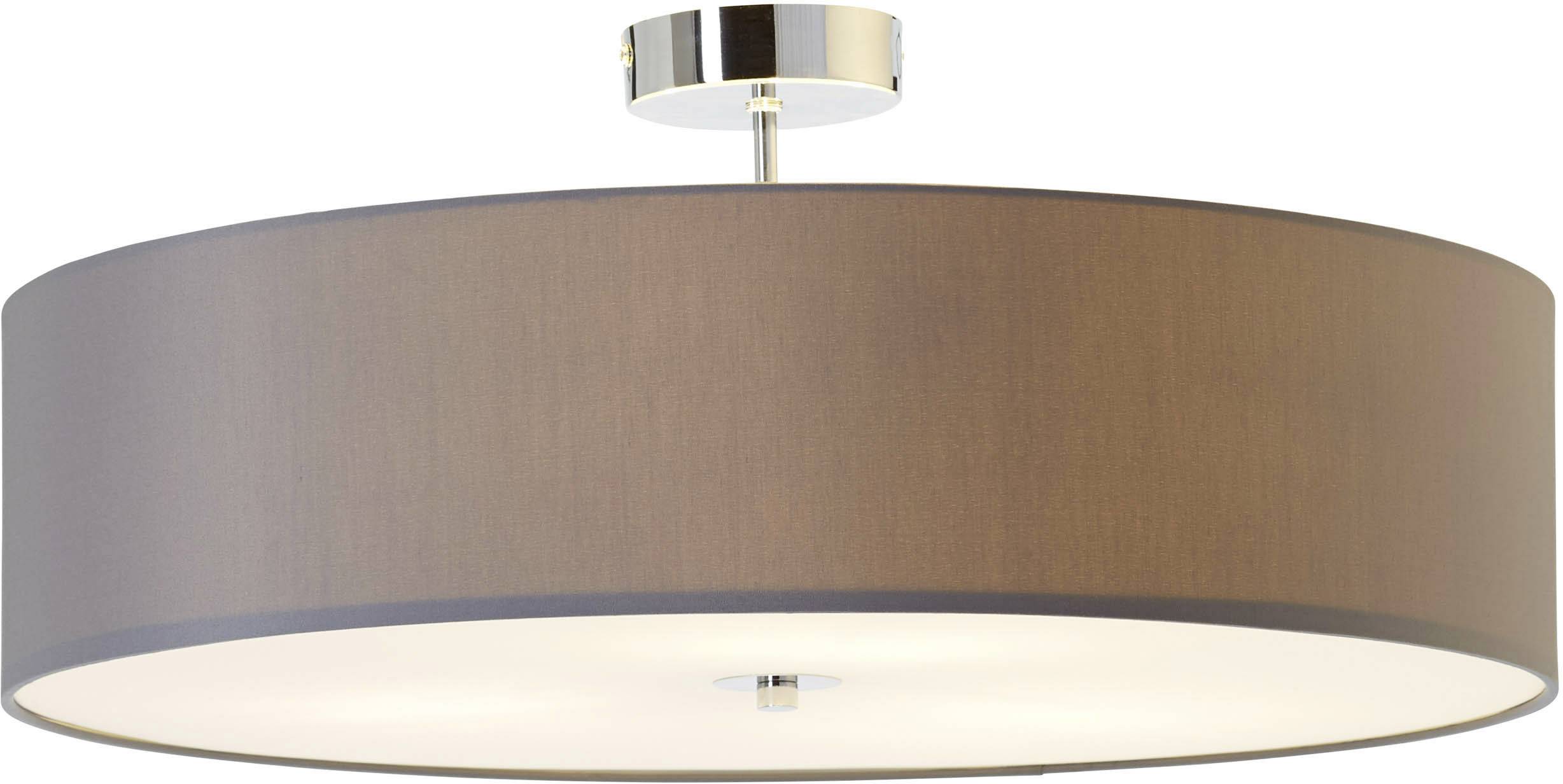 Dekoratives Licht erzeugt die Deckenleuchte Andria überall dort wo sie eingesetzt wird. Die Einsatzbereiche reichen vom Wohnzimmer bis zum Arbeitszimmer. Der Farbe Grau wird häufig nachgesagt, sie wirke deprimierend. In der Praxis beweist sie allerdings das Gegenteil. Sie strahlt Gemütlichkeit und Eleganz aus. Inzwischen gilt sie als Trendfarbe. Die hochwertig verarbeiteten Textilien sorgen für eine warme Lichtgestaltung. Das klassische Design steht für Gemütlichkeit und Harmonie und passt zu jedem Wohnambiente. Für Normallampen ausgelegt sind im Lieferumfang jedoch Leuchtmittel nicht inbegriffen. LED-Leuchtmittel können problemlos verwendet werden. Bei Verwendung geeigneter Leuchtmittel ist die Leuchte auch dimmbar. Der große Durchmesser der Deckenleuchte von 60 Zentimetern erhellt auch größere Räume problemlos. Das erforderliche Montagematerial liegt der Leuchte vollständig bei.