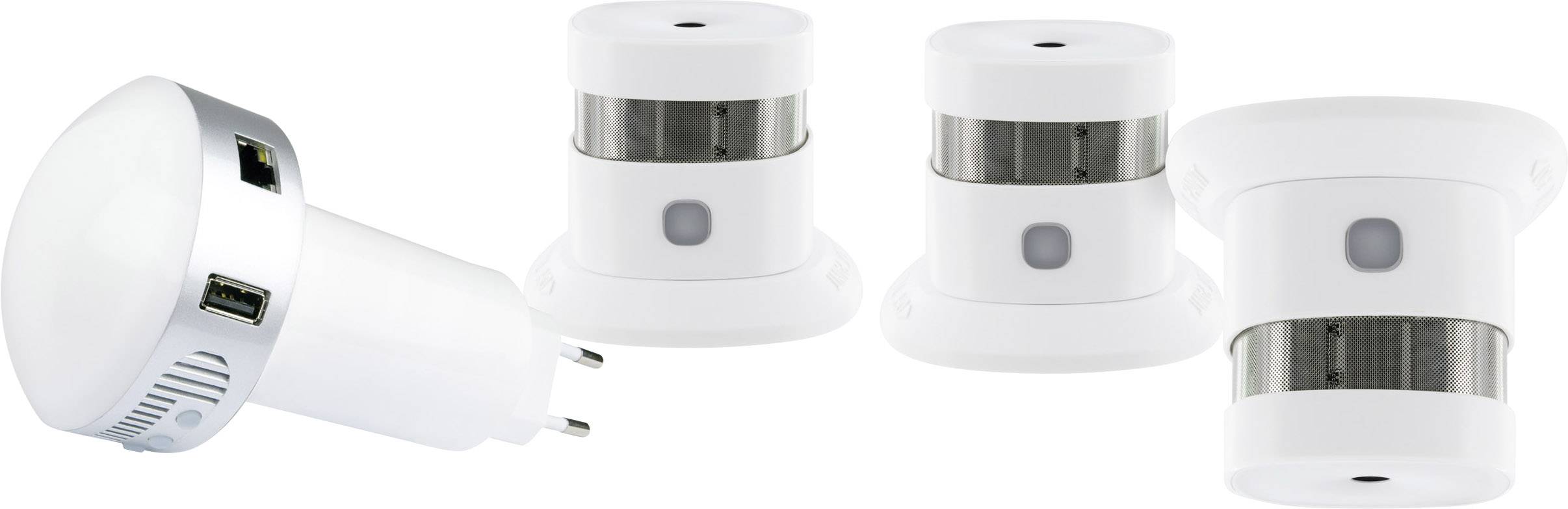 Das HOME4YOU® Starterset "Rauch" ist ein Paket zur Gefahrensicherung für Haus und Wohnung. Das SCHWAIGER® Gateway gibt über die SCHWAIGER App Informationen bei Rauchentwicklung im Haus bekannt. Die Rauchsensoren verwenden einen Photoelektronensensor zur zuverlässigen und sicheren Erkennung von Rauch. Mit der Testtaste und der blinkenden LED wird die Funktionalität angezeigt. Sobald ein Gerät Rauch erkennt, ertönt ein lautes Warnsignal. Über das Gateway können weitere HOME4YOU® Komponenten eingebunden werden.