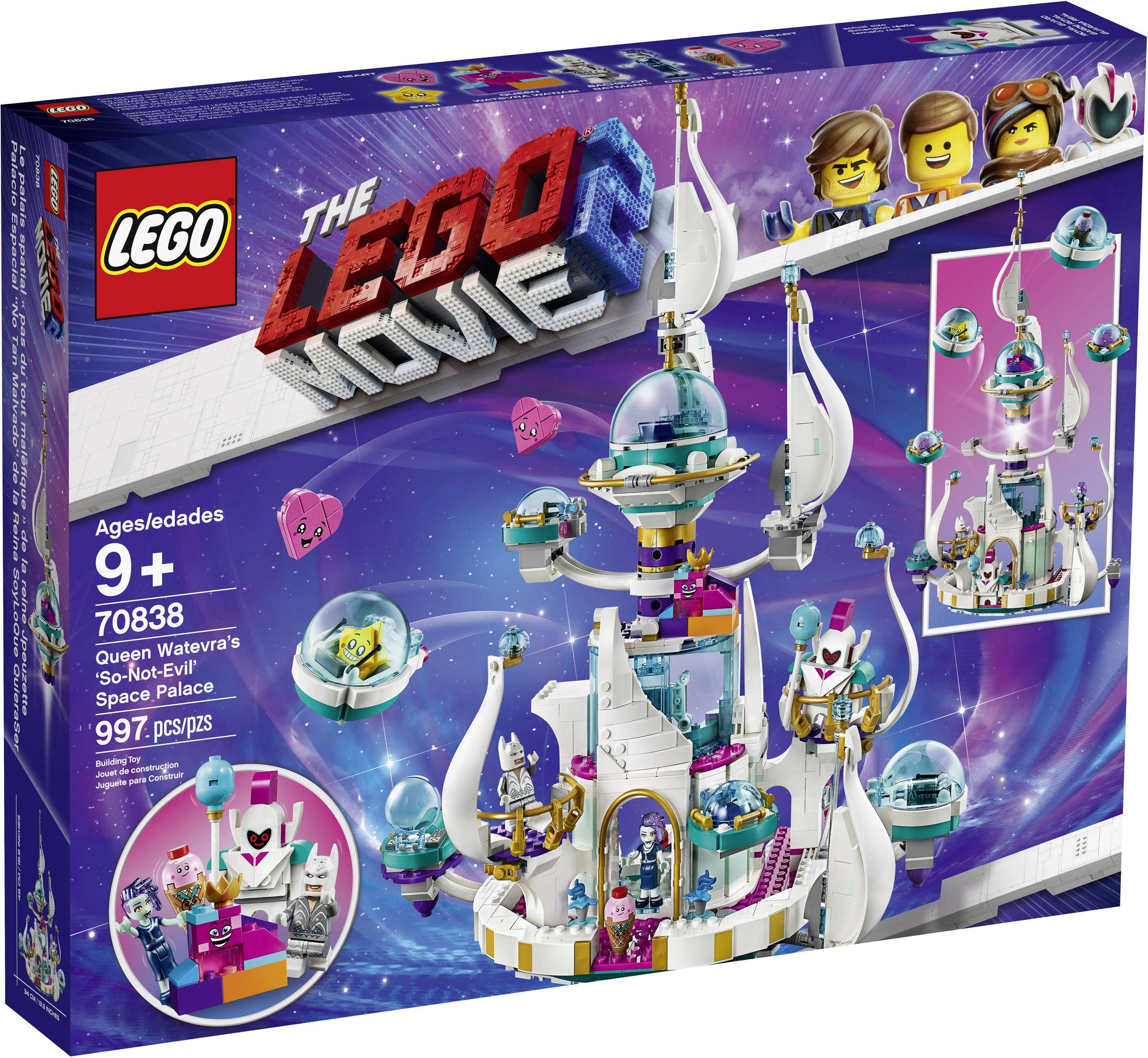 Beim Bauen von Königin Wasimma Si-Willis „gar nicht bösem“ Space-Tempel (70838) erwarten Kinder kosmische Action und tolle Rollenspiele mit ihren Lieblingsfiguren aus dem Blockbuster THE LEGO® MOVIE 2™. Dieser farbenfrohe LEGO Spielzeug-Palast verfügt über eine drehbare Spitze mit einer aufklappbaren, abnehmbaren Rakete für Königin Wasimma Si-Willi, abnehmbare Kapseln für andere Figuren, einen Sicherheitsraum, ein detailreiches Esszimmer und ein DJ-Pult für kreatives Spielvergnügen. Ein fantastisches Bauset für Kinder und Fans von THE LEGO MOVIE 2, die nichts lieber tun, als ihre Lieblingsszenen nachzuspielen und sich eigene Geschichten mit einer Minifigur, einer Spielfigur und 6 Figuren zum Zusammenbauen auszudenken.