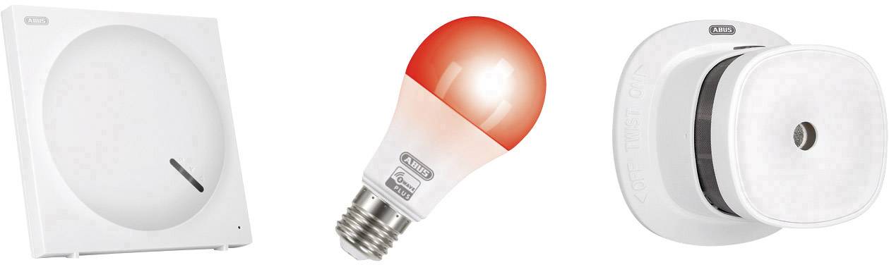 Kompakte Smart-Home Steuerzentrale im Family-Home-Design mit Z-Wave Funkstandard · Kompatibel zur ABUS Smartvest Funk-Alarmanlage · Umfangreiche Konfigurationsmöglichkeiten für bis zu 60 Szenen (Wenn- Dann - Wann) · Warnt zuverlässig vor lebensgefährlicher Rauchentwicklung und schlägt Alarm · Geringer Wartungsaufwand durch 5 Jahre Batterielebensdauer - warnt bei schwacher Batterie · Dimmbare LED-Lampe mit einstellbarer Leuchtfarbe (RGBW) und Lichttemperatur (Warmweiß/Kaltweiß) · So hell wie eine herkömmliche 60 W Glühbirne bei deutlich geringerem Stromverbrauch · Passt in jede E27 Fassung · Erweiterbar auf bis zu 120 Z-Wave Funk-Komponenten · Mobiler Zugriff von überall per Gratis-App ABUS Z-Wave ONE (iOS, Android).