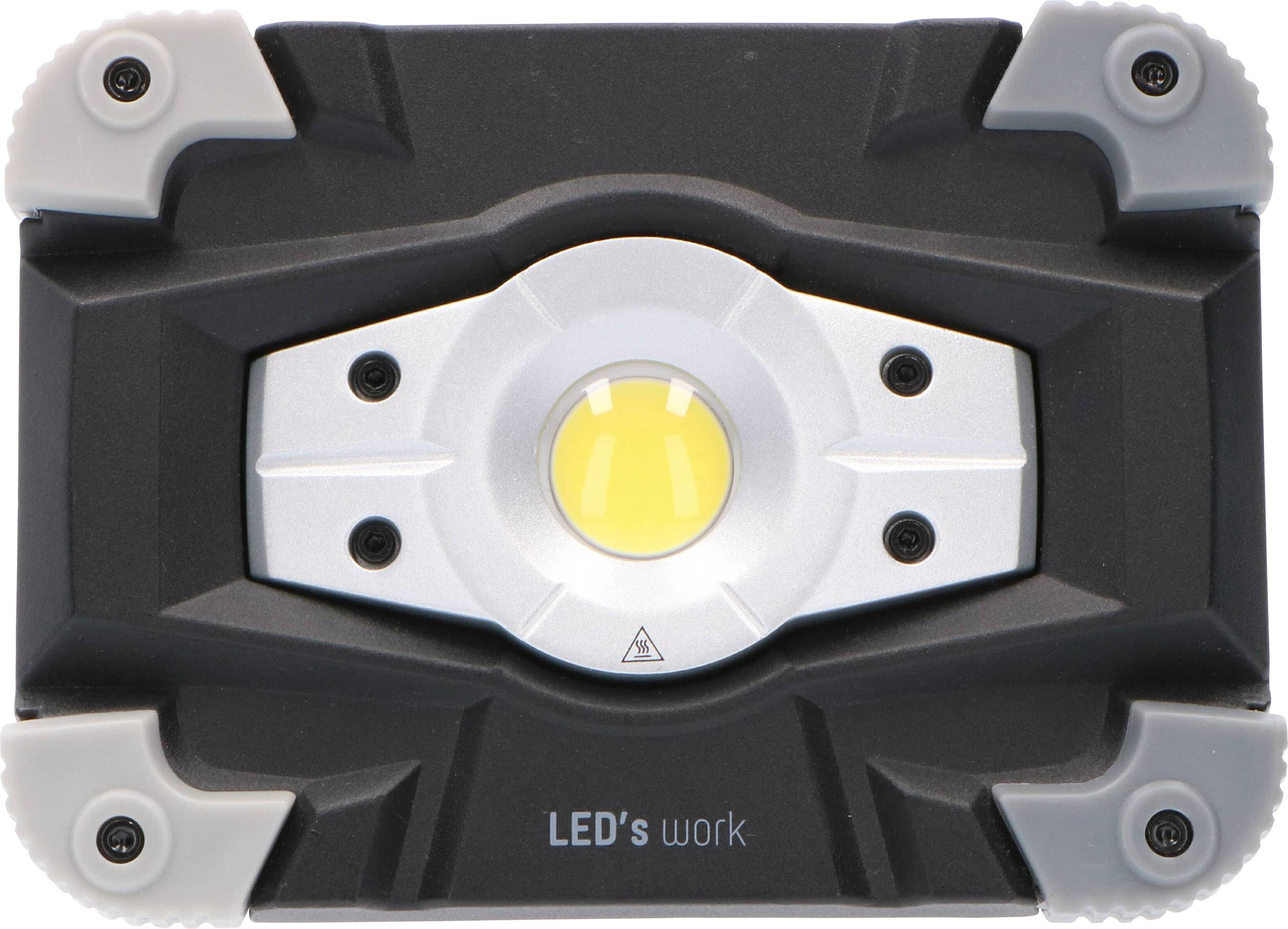 Wiederaufladbarer Strahler mit einem schlanken Aluminiumgehäuse. Eine robuste Polycarbonat-Abdeckung und ein pulverbeschichtetes Gehäuse machen dieses Produkt schlagfest (IK08) und geschützt gegen Staub und wasser (IP54). Dieser Strahler verfügt über einen wiederaufladbaren Lithium-Ionen-Akku, der das Produkt für bis zu 4 Stunden mit Strom versorgt, und ein USB-Ladekabel ist im Lieferumfang enthalten. Die verstellbare Halterung auf der Rückseite ist drehbar, so dass Sie das Produkt stabil auf jeder Oberfläche positionieren können.