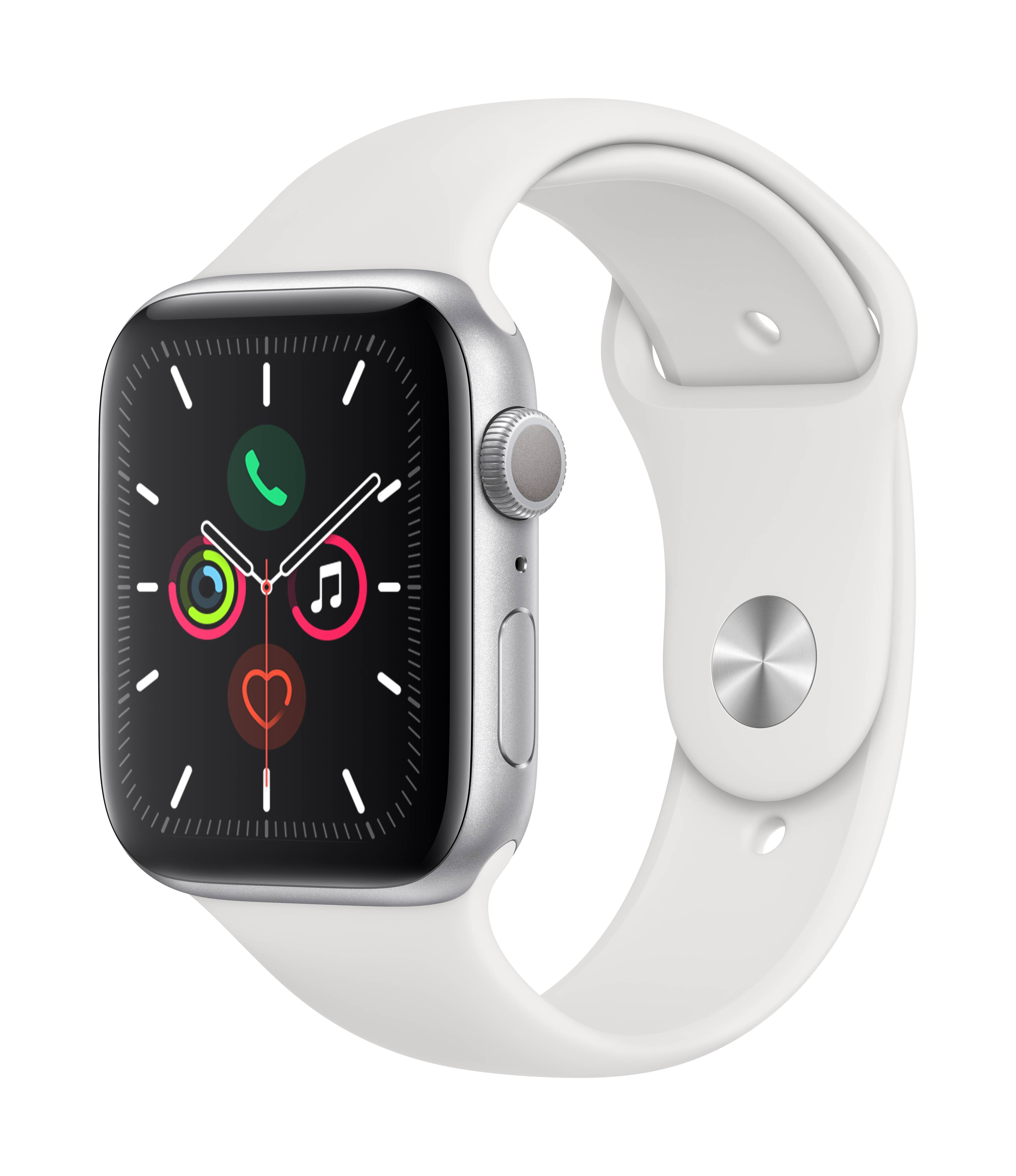 Apple Watch Series 5 GPS 44mm Aluminiumgehäuse Silber Sportarmband Weiß