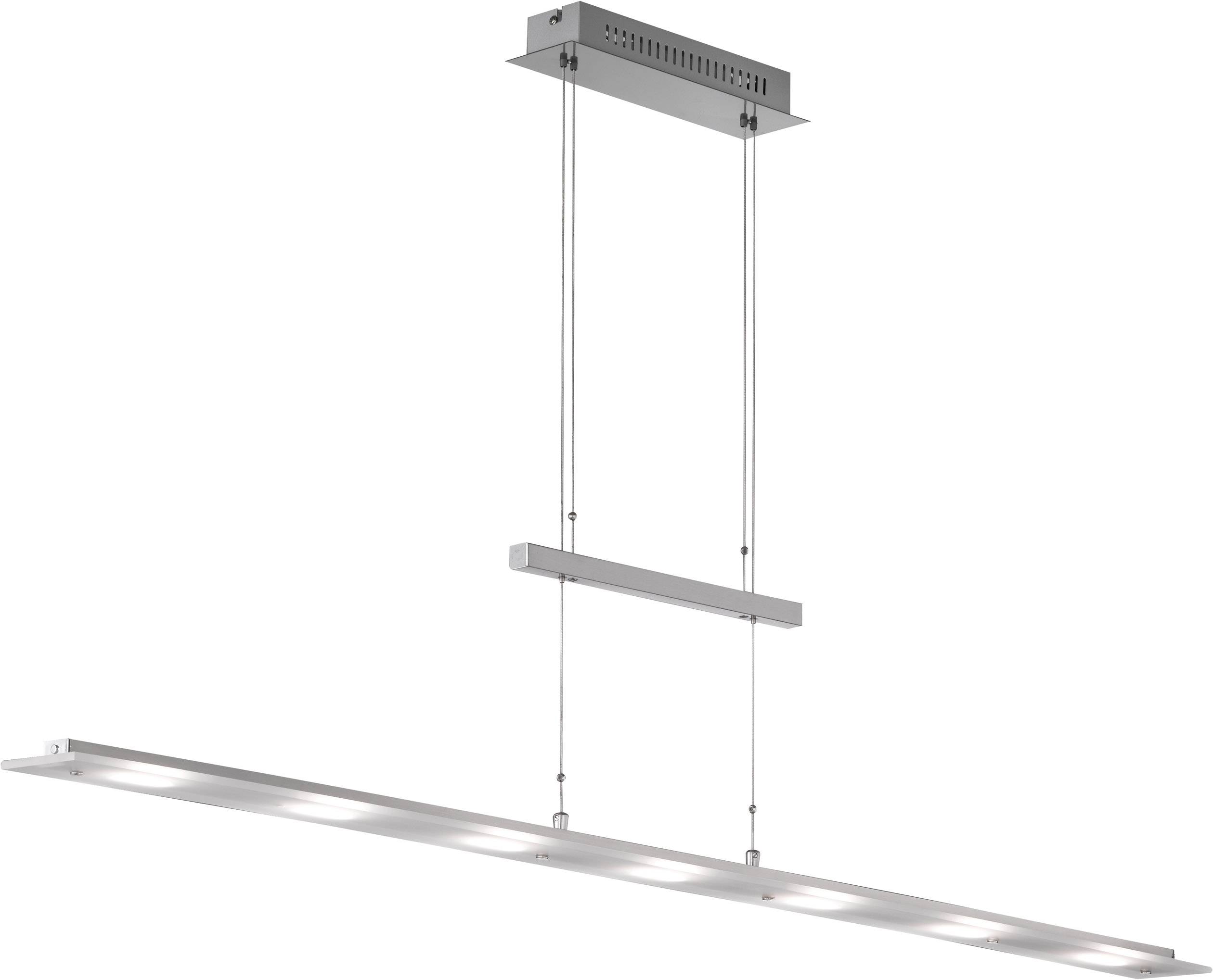 Licht auf den Punkt gebracht. Diese Pendelleuchte „Largo“ von der Firma Fischer & Honsel befindet sich im Einklang klassischer Eleganz und moderner LED Technologie. Dieser Artikel lässt sich durch Tastdimmer an der Leuchte individuell einstellen. “ Man dimmt einfach bis es stimmt“ und findet so durch diese Farbsteuerung das individuelle Wohlfühllicht: Warmweiß 2700K – schafft eine wohnlich, gemütliche Atmosphäre Neutralweiß 3350K – fördert die Aktivität Tageslichtweiß 4000K – für optimale Konzentration Die modernen LED´s haben eine hohe Lichtqualität und zeichnen sich durch Energieeffizienz aus. Im Vergleich zu herkömmlichen Leuchtmitteln lässt sich hier Energie sparen. Zusätzlich haben LED Lichtquellen eine lange Lebensdauer, produzieren weniger Wärme und schonen die Umwelt. Durch die moderne Oberfläche in nickelfarben matt/chromfarben und dem geraden satinierten Glas ist dieser Artikel eine puristische Schönheit und gibt ihrem Wohnraum ein besonderes Flair. Mit einer beträchtlichen Länge von 135 cm und einer Breite von 9 cm leuchtet sie auch größere Tische optimal aus und lässt durch die Höhenverstellbarkeit von 75-150 cm auch in diesem Bereich keine Wünsche offen.