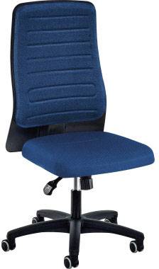 Formschaumsitz mit abgeflachten Sitzkanten und hoher Rückenlehne mit individuellem Polsterdesign, strapazierfähig und langlebig. Der Rücken gibt aufgrund seines dreidimensional geformten Rückenträgers optimalen Halt und Unterstützung. Die hohe Schaumdichte verhindert das Durchsitzen und gewährleistet einen langen Sitzkomfort auch bei Sitzdauern über 8 Stunden. Durch die höhenverstellbare Rückenlehne kann die Lordosenpartie individuell auf den Nutzer eingestellt werden. Die Fase an der Sitzvorderkante verhindert Blutstaus in den Oberschenkeln. Der Sitz und der Rücken bewegen sich synchron zueinander. Der Stuhl folgt im geöffneten Zustand den Bewegungen des Sitzenden. Die Bewegung kann in jedem beliebigen Winkel arretiert werden. Der Gegendruck der Rückenlehne kann über ein Handrad stufenlos eingestellt werden. Der Rücken wird ständig gestützt und die Bauchpartie somit entlastet, dadurch werden Verspannungen vermieden und die aufrechte Sitzposition gefördert. Dabei wird eine homogene Druckverteilung in den Wirbeln erzielt. Durch den individuell definierbaren Druck kann der Stuhl auf die unterschiedlichen Körpergewichte eingestellt werden und somit ein ermüdungsfreies. Arbeiten bis über 8 Stunden realisiert werden. Hohe Standsicherheit.