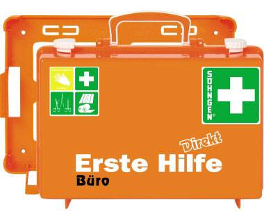 Eine klare Lösung für die individuellen Bedürfnisse in Ihrem Betrieb bietet das SÖHNGEN ® Programm Erste Hilfe DIREKT. Die Koffer der Serie Erste Hilfe DIREKT sind Erste-Hilfe-Koffer für kleinere Betriebe und Gruppen aus Verwaltung, Handwerk und Dienstleistung. Ausstattung zuzüglich Erste-Hilfe-Material nach berufsspezifischer Risikobewertung. Erste Hilfe DIREKT - einfach einmalig und praktisch. Für stationären Einsatz bei Tätigkeiten im Betrieb und dazu noch mobil einsetzbar - bei Außerhaus-Tätigkeiten einfach mitnehmen. Wandhalterung mit 90° Stopp-Arretierung, Drehverschlüsse, Tragegriff, Gummidichtung, Kennzeichnung mit Piktogrammen und Siebdruckbeschriftung.