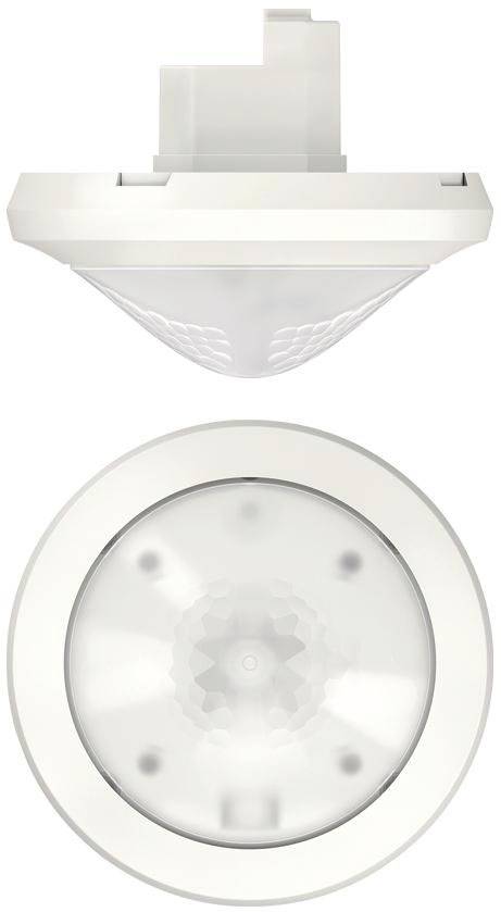UP-Präsenzmelder für Deckenmontage, DALI-Schnittstelle, Erfassungsbereich 30 x 4,5 m umschaltbar auf 15 x 4,5 m (für gehende Personen) bei 3 m Montagehöhe, Montagehöhe bis zu 6 m, 1 Lichtkanal broadcast umschaltbar auf 2 Lichtkanäle adressierbar, max. 50 DALI EVGs, Konstantlichtregelung oder Schaltbetrieb mit dimmbarer Beleuchtung, Stand-by Dimmwert stufenlos von 1-25 % einstellbar als Orientierungslicht, zusätzlicher Kanal für externes DALI-Relais, 2 Lichtmessungen, 2 Tastereingänge, Betrieb als Voll- oder Halbautomat umschaltbar, Teach-in-, Treppenlicht-Funktion, Kurzzeit-Präsenz, fernbedienbar, Lichtmessung 10-3000 Lux, einfacher Abgleich der Lichtmessung,Empfindlichkeit einstellbar,Betriebsspannung 110 - 230 V AC, 50/60 Hz, Eigenverbrauch 0,4 W, Schutzart IP 54, Gehäuse weiß