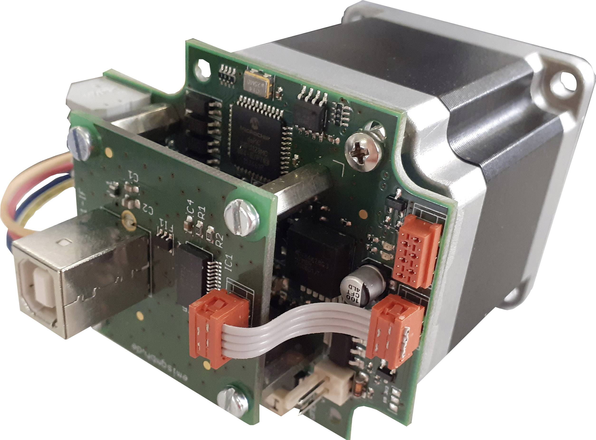 Die neue und kompakte dMOT-56 bietet dem Anwender eine sehr einfache Handhabung. Der Schrittmotor mit aufgesetzter Steuerung wurde für verschiedene Baugrößen von Motoren gefertigt. Die Einheit wird mit 24V DC betrieben und kann über ein USB-Kabel mit dem PC verbunden werden. Es besteht die Möglichkeit Referenzschalter und Not-Aus-Baugruppen anzuschließen. Ebenso ist der Anschluss von einem Lüfter vorgesehen. Durch die konzeptionierung der Leiterplatte können mehrere Motoren gekoppelt werden. Mit Hilfe der mitgelieferten Software ist der Benutzer sehr schnell in der Lage, eigene Ideen umzusetzen.