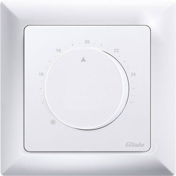 Funk-Temperaturregler mit Handrad reinweiß glänzend für Einzel-Montage 80x80x27mm oder Montage in das 55er-Schaltersystem. Mit Batterie (Lebensdauer 4 Jahre). Smart Home Sensor. Der Temperatur-Regler kann in das Heiz-Kühl-Relais FHK oder in den Aktor TF61R und die Gebäudefunk-Visualisierungs- und Steuerungs-Software GFVS eingelernt werden. Der Temperatur-Regler sendet bei einer Soll-Temperaturänderung von mind. 0,15°C innerhalb von 60 Sekunden eine Meldung in den Eltako-Gebäudefunk. Erfolgt keine Änderung, so wird alle 5 Minuten eine Statusmeldung gesendet. In der Betriebsart TF61 wird nur EIN oder AUS gesendet, in der Betriebsart FHK werden die Ist- und Solltemperatur gesendet. Die Messgenauigkeit beträgt ca. 1°C. Die Tages-Solltemperatur wird zwischen +12°C und +28°C mit dem Handrad eingestellt. In der Stellung ist die Temperaturregelung aus und die Frostschutzfunktion aktiv. Zur Schraubbefestigung empfehlen wir Edelstahl-Senkschrauben 2,9x25mm, DIN 7982 C. Sowohl mit Dübeln 5x25mm als auch auf 55mm-Schalterdosen. Je 2 Stück Edelstahl-Senkschrauben 2,9x25mm und Dübel 5x25mm liegen bei. Die Stromversorgung für mehrere Jahre übernehmen zwei innenliegende 3V-Knopfzellen CR1632. Der Funksensor kann in nachstehende Aktoren und in die Gebäudefunk-Visualisierungs- und Steuerungs-Software eingelernt werden: FAE14, FHK14, F4HK14, F2L14, FHK61, FME14, TF61R.