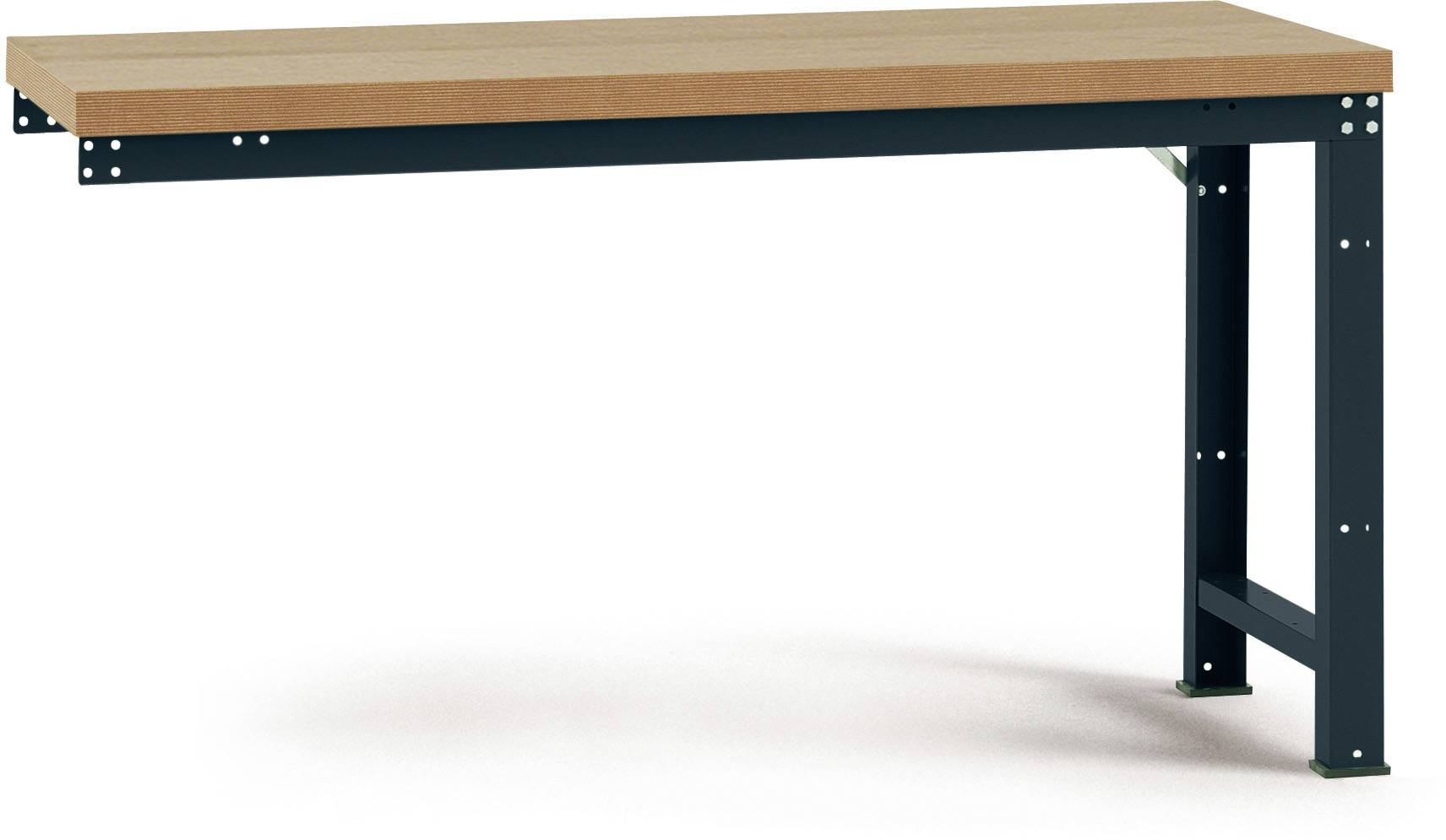 Die Anbauwerkbank PROFI Standard in Anthrazit RAL 7016, 1250, 700 mm tief und 840 mm hoch, ist äußerst stabil und langlebig durch das selbsttragende Stahlrahmengestell . Die Werkbank PROFI ist als Einzel- sowie auch als Reihenwerkbank einsetzbar. Insbesondere Arbeiten mit hoher mechanischer Beanspruchung finden hier Ihren Platz, aber auch komplett ausgestattete Fertigungs- oder Montagearbeitsplätze lassen sich aufgrund des vielfältigen Zubehörs mit der Werkbank PROFI realisieren. Die Stabilität verdankt die Werkbank Ihrer sehr hohen Tragkraft von 2000 kg (bei gleichmäßiger Lastverteilung). Das selbsttragende Gestell besteht aus 1 Stahlprofilrahmen 60 x 60 mm und 2 stabilen, 60 mm hohen Zargen sowie Gummischuhen (6 mm) zur Schonung des Bodenbelags. Das Gestell ist hochwertig pulverbeschichtet in Anthrazit RAL 7016. Die geölte Multiplex-Werkbankplatte 40 mm stark, 1250 mm breit und 700 mm tief, besteht entsprechend der DIN 68705 Teil 2 aus einer Buche-Vielschichtplatte der Güteklasse I/III. Die Multiplex-Werkbankplatte ist unter hohem Druck kreuzweise wasserfest verleimt nach DIN 68705 IF (IW67) sowie umweltschonend geölt. Alle Kanten und Ecken sind geschliffen und gefast. Eine Klarlackierung der Multiplexplatte ist auf Anfrage möglich. Die Multiplex-Werkbankplatte ist für den Profi Einsatz, bei sehr hoher mechanischer Beanspruchung im Montage- und Fertigungsbereich geeignet. Aufgrund der Verleimung kann die Tischplatte auch für gelegentliche Arbeiten mit feuchten Materialien eingesetzt werden. ACHTUNG! Für eine Anbauwerkbank PROFI Standard ist eine Grundwerkbank erforderlich (Grundwerkbank PROFI Standard Produkt-Nummer: WP3004.7016). Auf Anfrage ist die Werkbank PROFI Standard auch in leitfähiger Ausführung lieferbar.