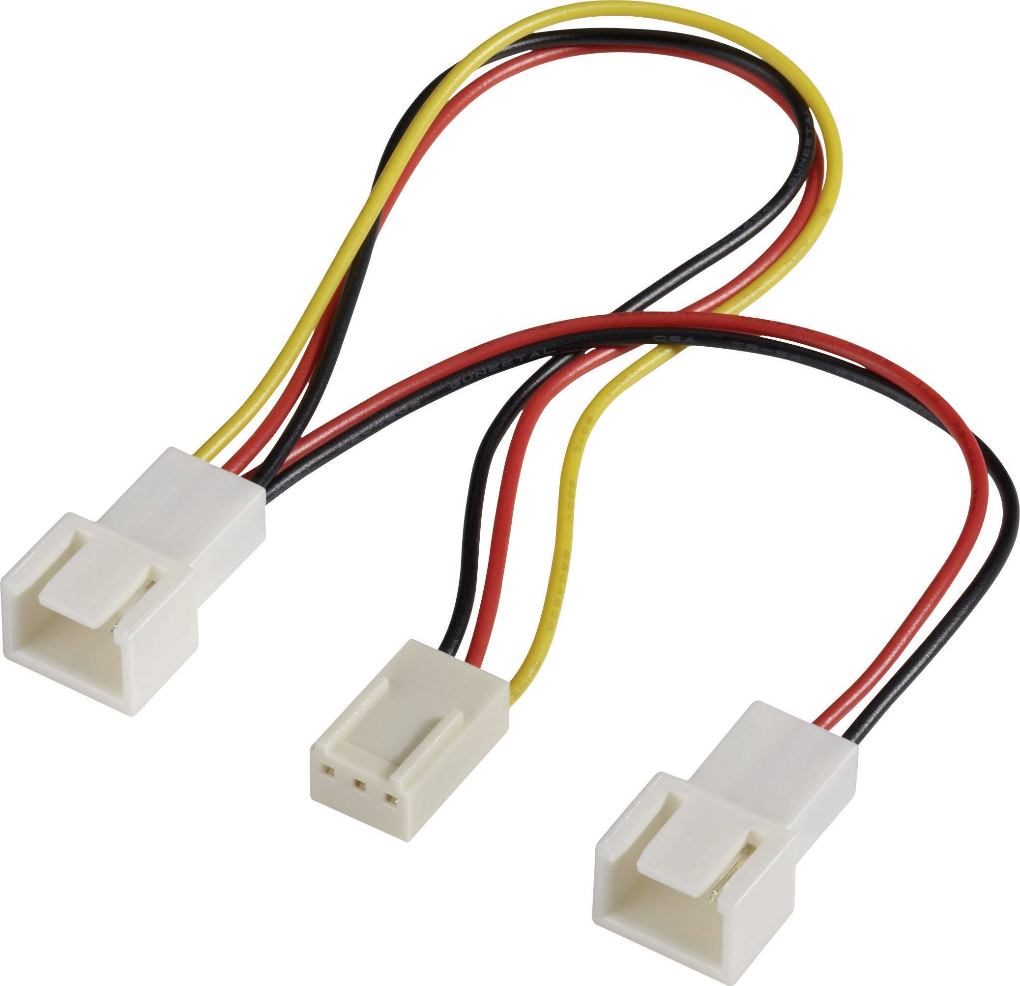 Akasa PC-Lüfter Y-Kabel [2x PC-Lüfter Stecker 3pol. - 1x PC-Lüfter Buchse 3pol.] 0.15m Schwarz, Rot, Gelb