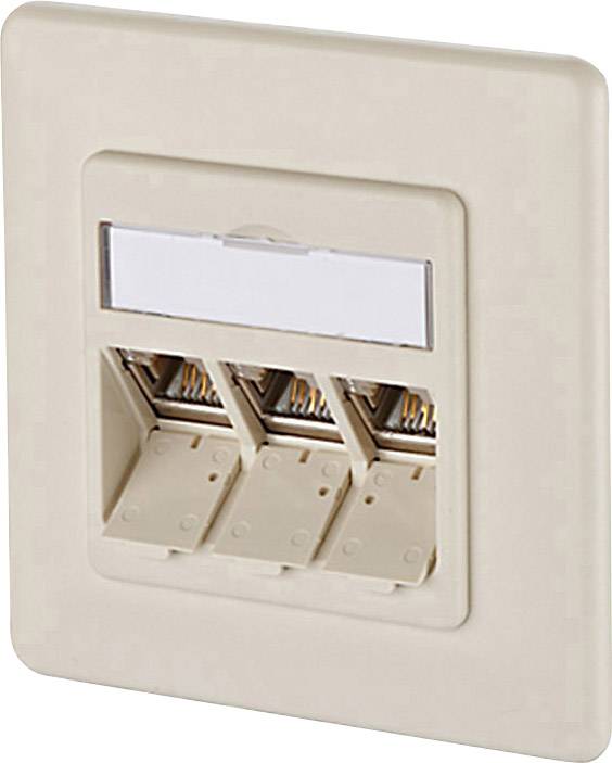 Datendose mit rückwärtiger Kabelzuführung zum Installieren von 3 getrennten Netzwerkleitungen. Das sind 50% mehr Anschlüsse als herkömmliche Dosen bieten. Der Anschluss erfolgt über die mitgelieferten 10 GBit Module (GHMT PVP zertifiziert), welche in die Dose eingerastet werden.