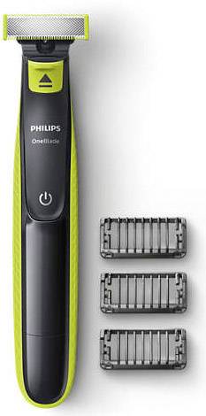 Philips OneBlade + 3 aufsteckbare Trimmeraufsätze + 1 Klinge + Anleitung.