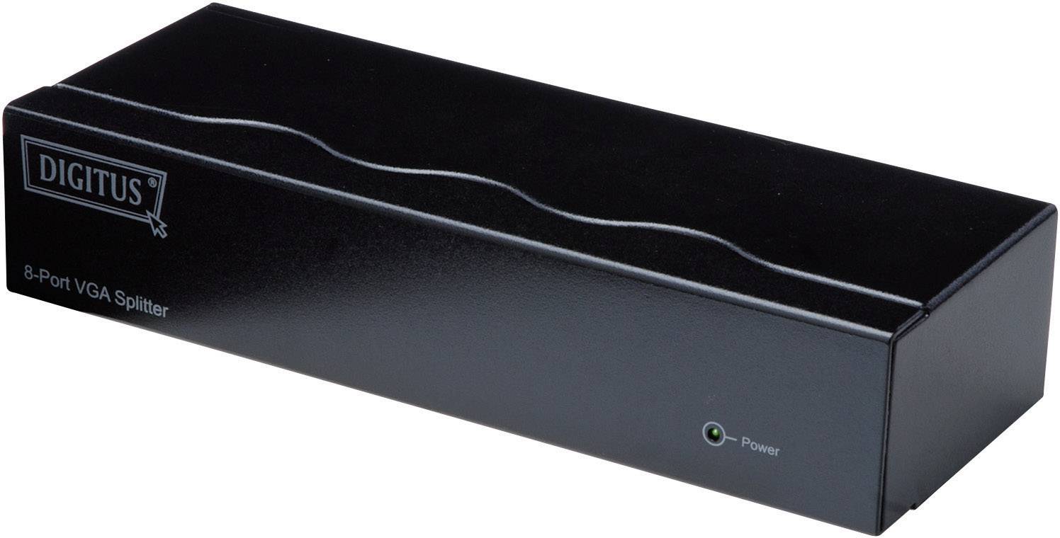 Mit diesem Video-Splitter können bis zu 8 Monitore gleichzeitig mit einem Bild gespeist werden. Dies ist vorallem im gewerblichen Bereich von Vorteil. Ebenfalls Einsatz findet ein VGA-Splitter bei professionellen Präsentationen. Ein eingebauter Leistungsverstärker sorgt für eine optimale Übertragung des Bildsignales.