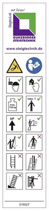 Gemäß DIN EN 131-3 sind produktspezifische Aufkleber mit Benutzerhinweisen anzubringen. Die Erklärung zu den verwendeten Piktogrammen finden Sie in unserer PDF-Datei