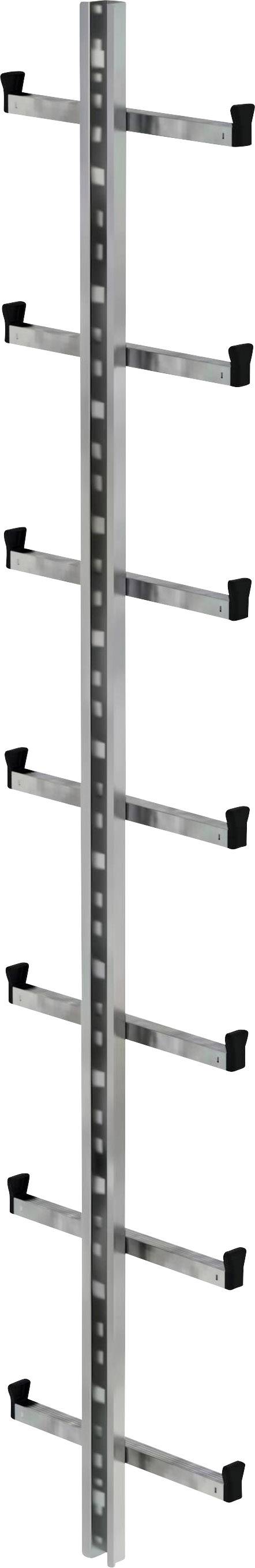 Steigschutzschiene mit Sprossen verschweißt Komplett mit Verbindungslaschen Seitlicher Abgleitschutz aus Kunststoff bei Stahlleitern und bei Edelstahlleitern Seitlich angeschraubter Abgleitschutz aus Aluminium bei Aluminiumleitern Leiterbreite: 370 mm