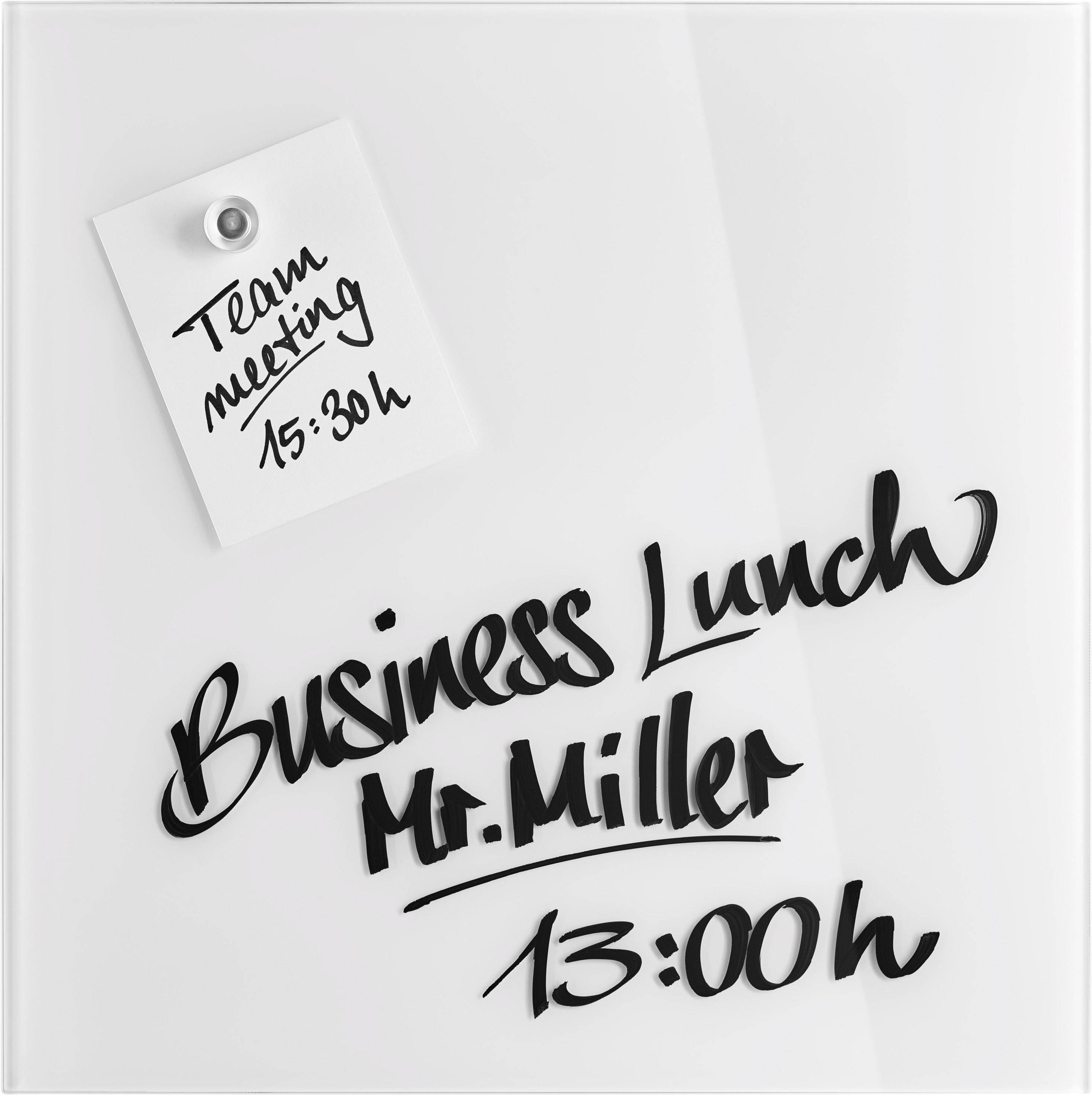 Magnetoplan Design-Glasboards sind eine moderne, elegante Alternative zu herkömmlichen Whiteboards. Die stylischen Schreib- und Infotafeln für Büro und Privatbereich sind beschreibbar - Notizen, Fotos und Co lassen sich magnethaftend befestigen. Sie überzeugen durch das elegante und luxuriöse Erscheinungsbild mit purer Ästhtik. Gefertigt aus hochglänzendem ESG-Sicherheitsglas in Premium-Qualität, hängen sie frei schwebend vor der Wand. Die Boards lassen sich in jeder gewünschten Kombination montieren: Nebeneinander, untereinander oder im rechten Winkel zueinander. In brilliant-weiß sowie den Trendfarben tiefschwarz und intensivrot, werden sie zum Eyecatcher an jeder Wand. Durch ihre Farbe, Form und das ansprechende Erscheinungsbild fügen sich die Glasboards perfekt in jede Inneneinrichtung ein. Mehr noch: Sie geben jedem Raum eine moderne, individuelle Note.