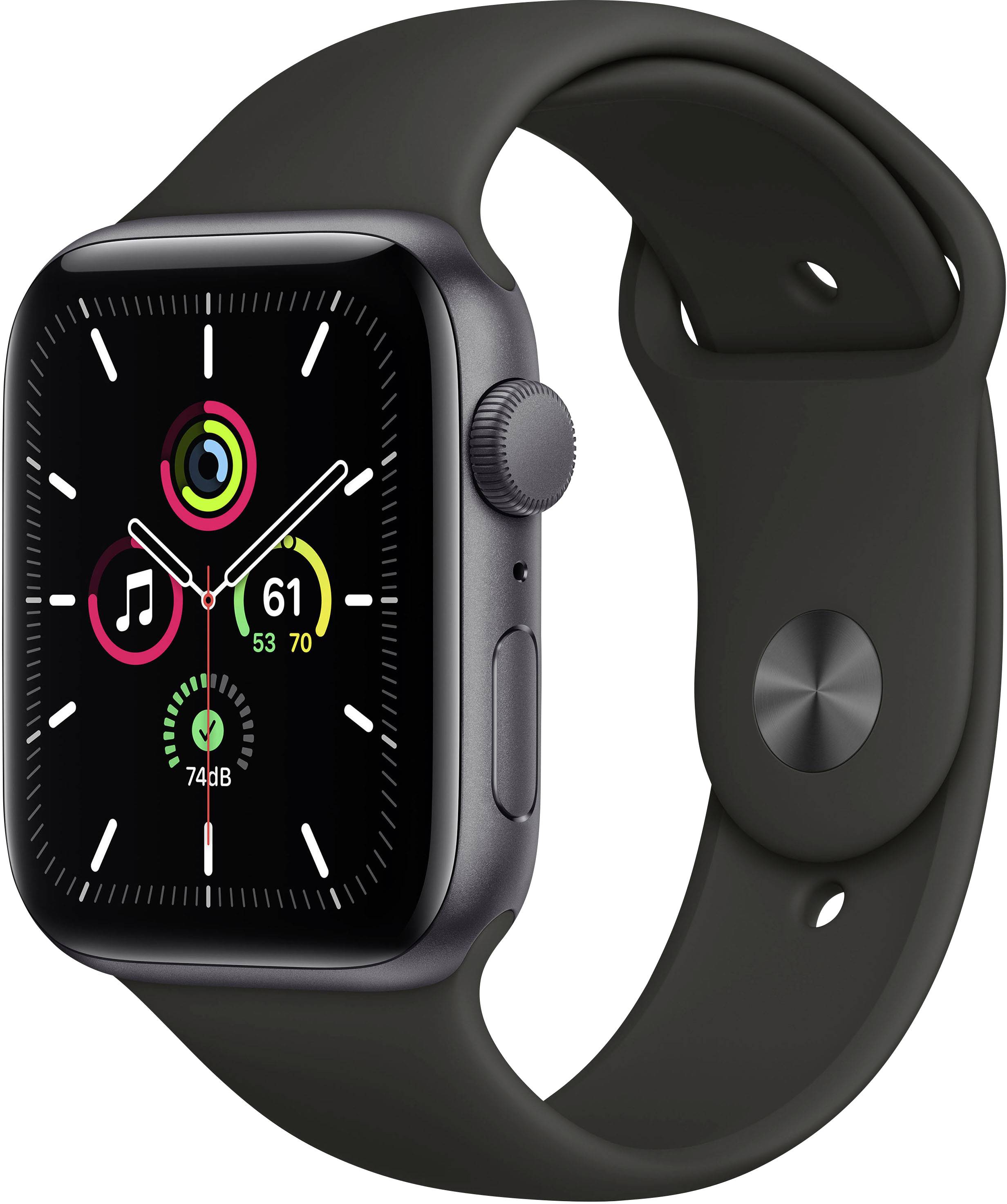 Apple Watch SE GPS 44mm Aluminiumgehäuse Space Grau Sportarmband Schwarz