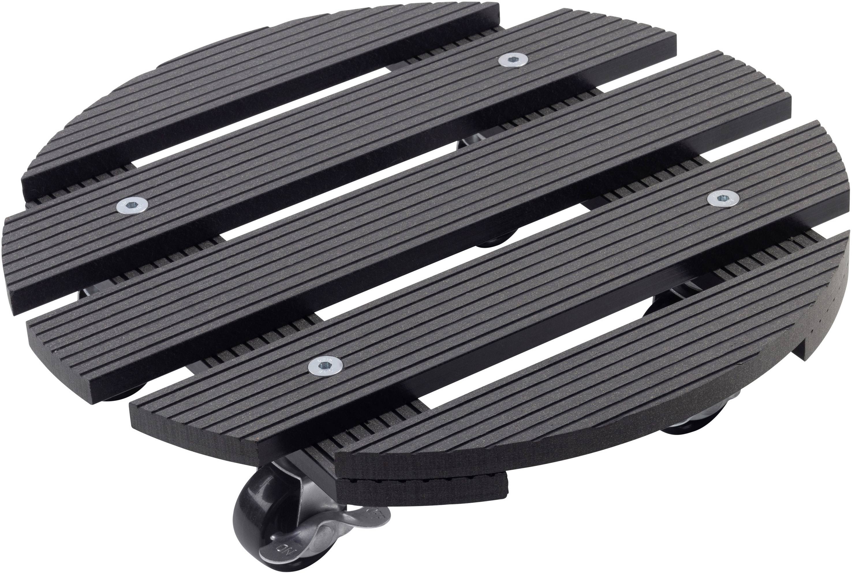Tragfähigkeit (max.): 60 kg · Platten-Größe: Ø 300 mm · Plattenstärke: 10 mm · Gesamthöhe: 73 mm · Rad-Ø: 38 mm · Material Rad: Polypropylen (PP) · Material Platte: WPC · Anzahl Räder: 4