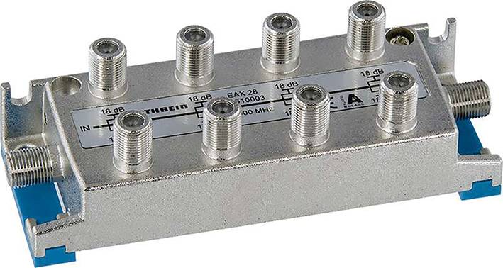 Frequenzbereich: 5-1200 MHz (d. h. Rückweg- und UHF-tauglich) Erweiterung auf 12fach-, 14fach- oder 16fach-Abzweiger möglich Trennkondensatoren an Ein- und Ausgängen