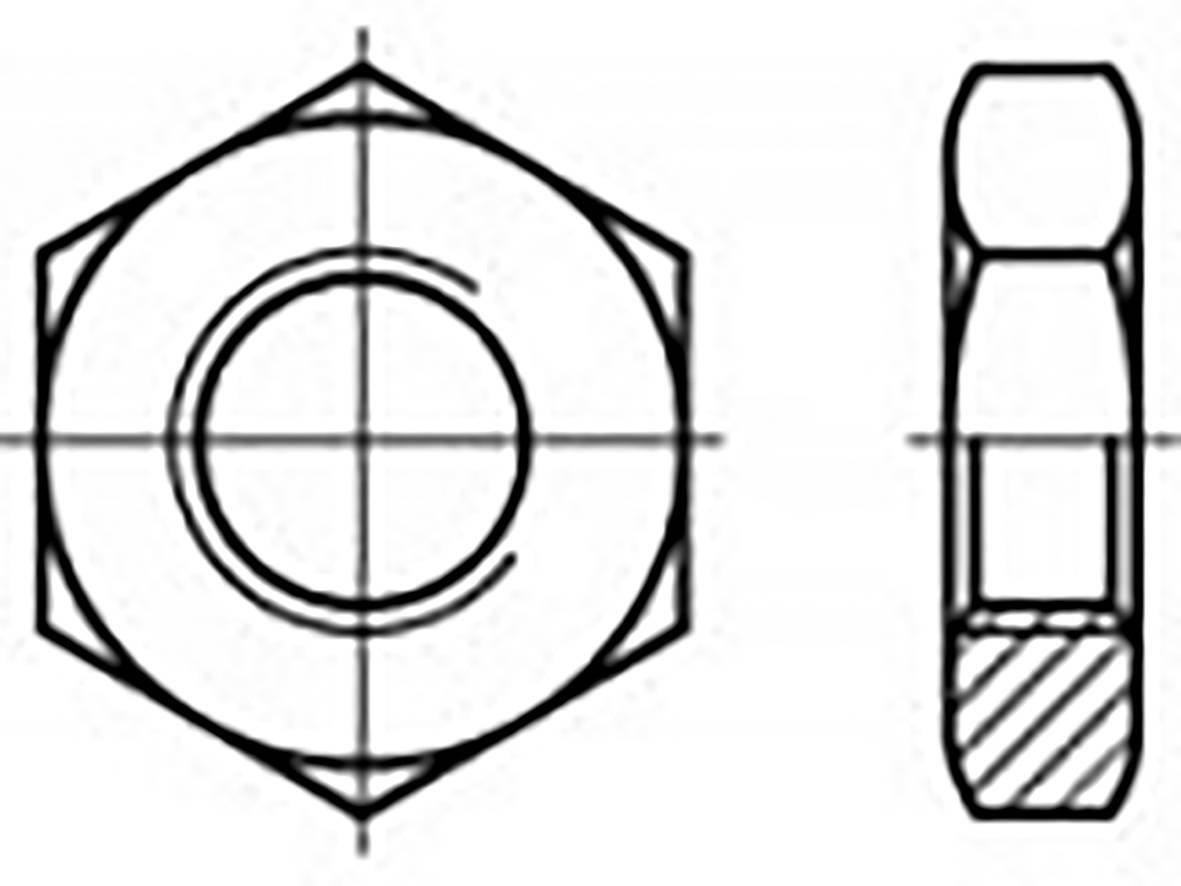 DIN 439 A 2 Form B Sechskantmuttern, niedrige Form, mit Fasen Abmessung: BM 5