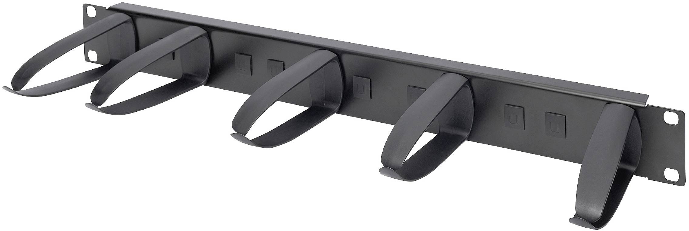 Die 5 Kabelführungsbügel lassen sich individuell mit Patch-Kabeln bestücken und gewährleisten ein sauberes Kabel-Management, z.B. zwischen einem Netzwerk-Switch und mehreren Patch-Paneln