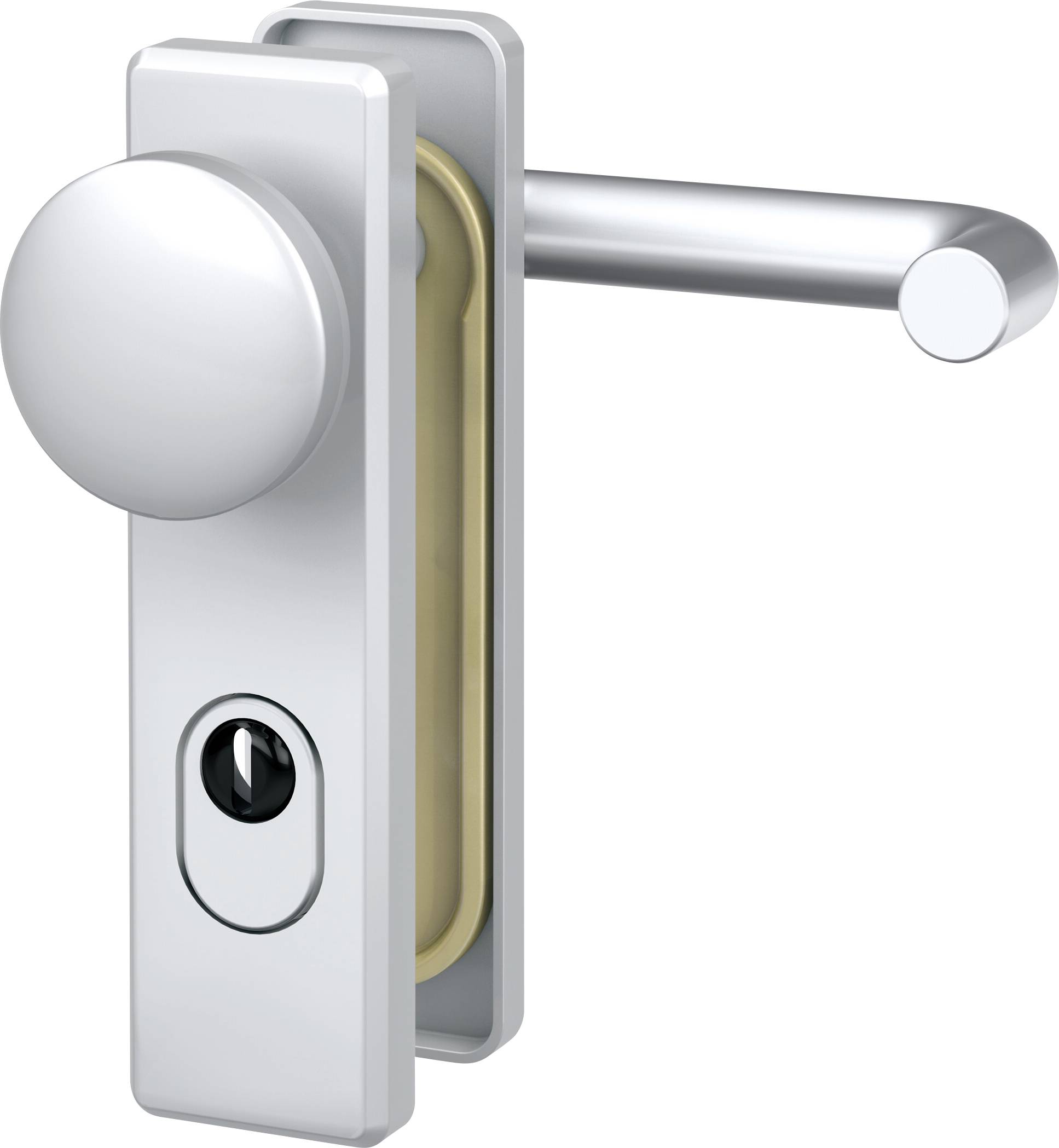 Wechselgarnitur: runder Knauf, Drücker / Klinke der Innenseite in U-Form, Geprüft nach DIN 18257