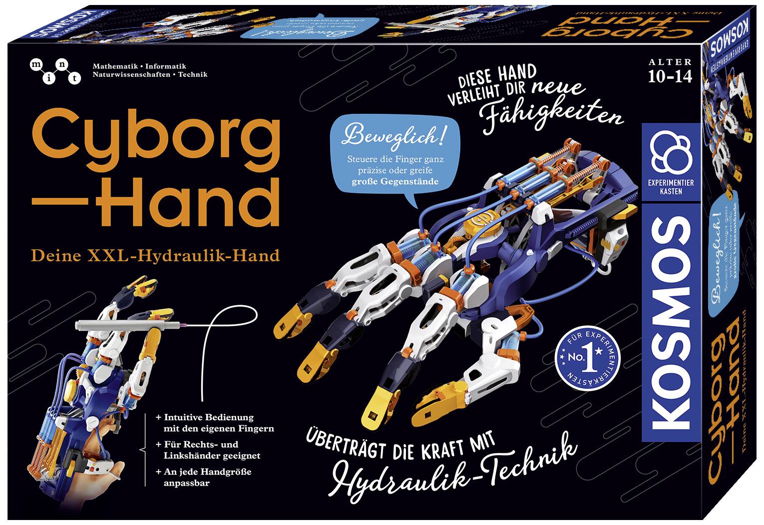 Bauen, tüfteln, ausprobieren – in der Cyborg-Hand steckt echter Technik-Spaß! Kinder bauen das mechanische Exo-Skelett aus vielen Einzelteilen zusammen, den passenden Schraubendreher finden sie in dem Set. Ist die Exo-Hand fertig, wird sie über die eigene gezogen und schon werden die Bewegungen präzise auf die künstliche Hand übertragen. Genial: die Roboterhand funktioniert hydraulisch, also nur über den Druck von Wasser!