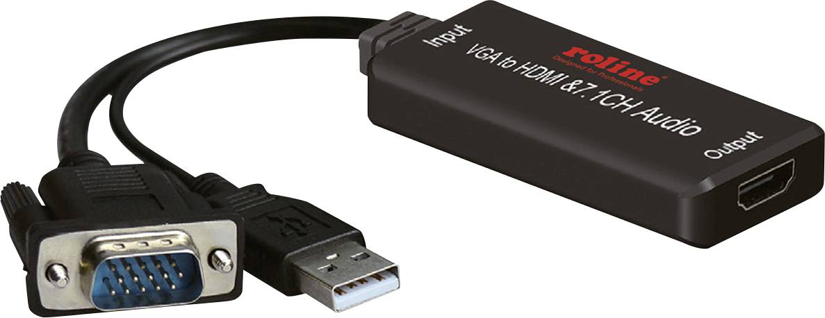 Nutzen Sie moderne Anzeigegeräte mit HDMI-Eingang auch an älteren PCs und Notebooks, die noch einen VGA-Ausgang haben! Dieses Adapterkabel ermöglicht es, die Anzeige eines Rechners mit VGA- und Audio-Ausgang auf Projektoren, Fernseher und Monitore mit HDMI-Anschluss zu schicken Unterstützt Audio und Video Das Audio-Signal des Rechners wird über das USB Kabel aufgenommen und zusammen mit dem VGA-Video-Signal eingebettet in ein HDMI-Signal Auflösung bis 1080p Stromversorgung über USB Farbe: schwarz