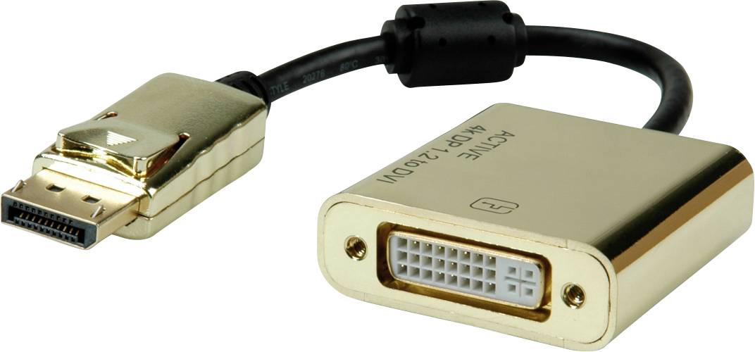 Sie wollen an Ihre Grafikkarte mit DisplayPort-Ausgang ein DVI-Kabel zum Monitor anbringen? Die Lösung ist dieser DisplayPort-DVI-Adapter in ROLINE GOLD Qualität. Adapter mit DisplayPort-Stecker und DVI-Buchse zum Anschluss eines DVI ST-ST Kabels an eine DisplayPort-Buchse der Grafikkarte. DisplayPort Version 1.2 erlaubt höhere Auflösungen und Bildwiederholraten sowie größere Farbtiefen. Hinweis: Der DisplayPort-DVI-Adapter funktioniert nur in einer Richtung: der DisplayPort-Stecker ist nur auf der Datenquellenseite verwendbar(z.B. Grafikkarte). Was sind die Vorteile beim Verwenden eines aktiven Adapters? Aktive Adapter sollten dann eingesetzt werden, wenn Sie längere Kabel verwenden. Das Bildsignal wird im Adapter elektronisch umgewandelt und verbessert Ihr Bild. ROLINE GOLD - Topqualität ohne Kompromisse! Kabel in ROLINE GOLD-Qualität verfügen über hochwertige Steckergehäuse und vergoldete Steckkontakte mit zweifacher Abschirmung für eine bessere Signalqualität auch bei hohen Steckzyklen. Der Nylonmantel in gold/schwarz sorgt für eine bessere Stabilität und verleiht dem Kabel eine außergewöhnliche Optik. Mit attraktiver Blister-Verpackung für Retailer oder Wiederverkäufer.