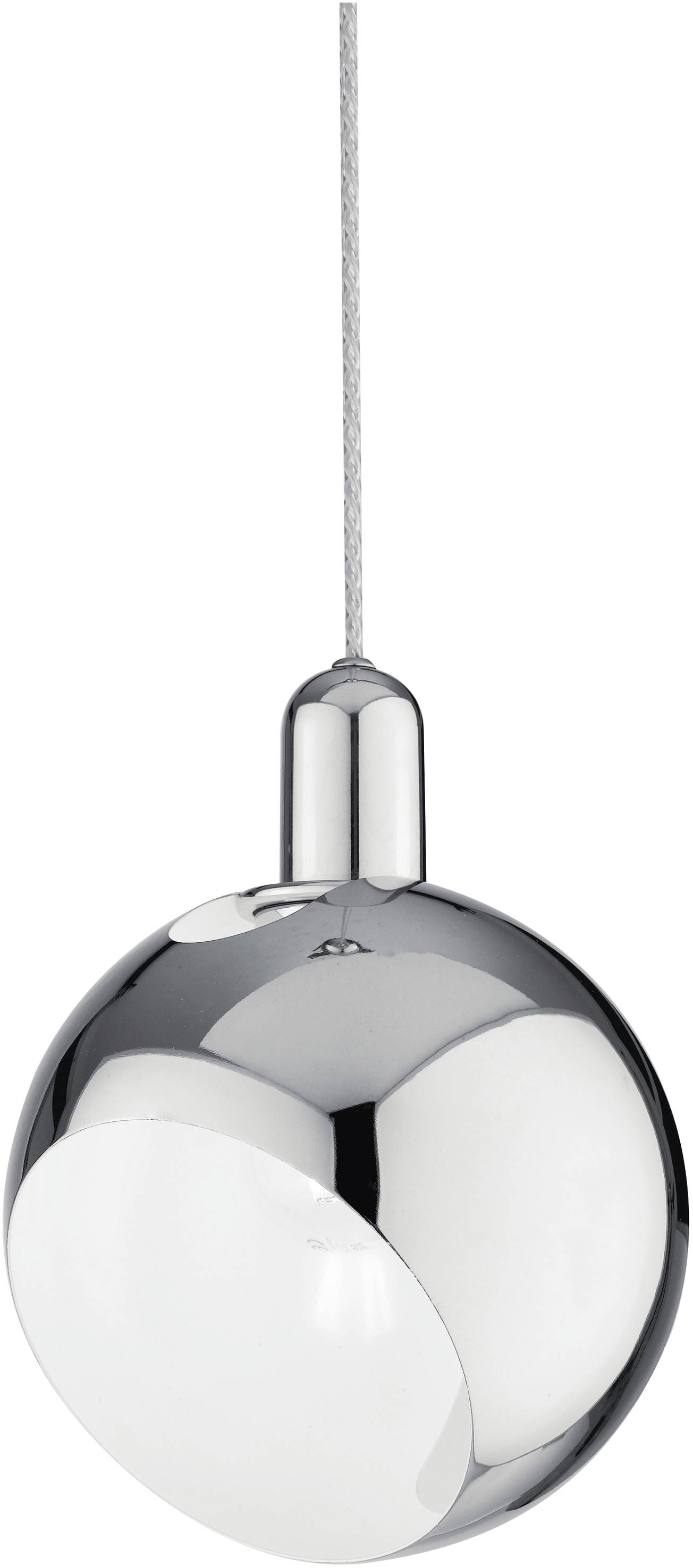 NARCISO ist eine Hängelampe, die lediglich aus einer offenen, verstellbaren Chrom kugel besteht, die mit einer Abhängung verbunden ist. Ihre Lichtwirkung sollte besonders hervorgehoben werden, denn durch ihre Verstellbarkeit kann das Licht in den ganzen Raum dringen und ihn wohnlich und blendfrei beleuchten. Dabei kommt die universale Kugelform in jedem Raum gut an und NARCISO eignet sich durch die Verstellbarkeit der Kugel ebenso gut als Tischbeleuchtung für Ihren Essbereich.